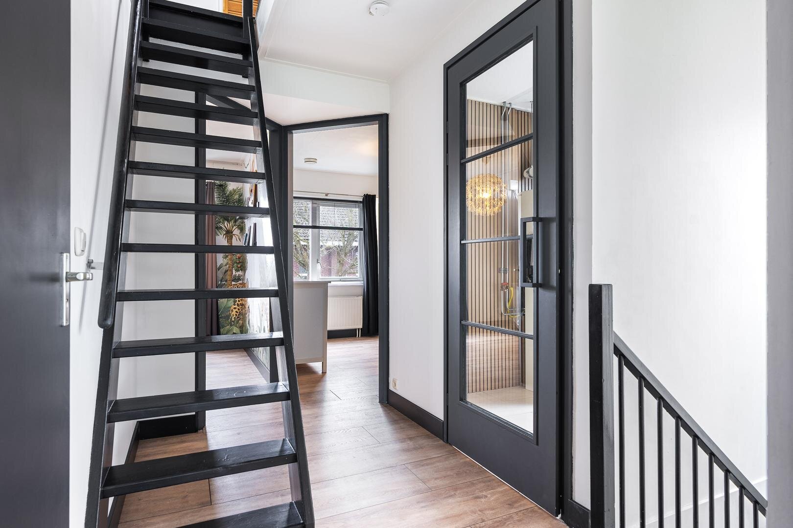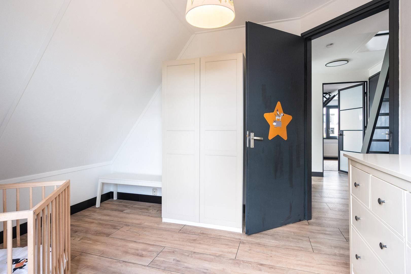 Op de tweede verdieping bevindt zich de vijfde slaapkamer, gelegen aan de achterzijde van de woning. De ruime overloop biedt daarnaast volop bergruimte, ideaal voor het opbergen van seizoensspullen of het creëren van een extra werk- of hobbyplek.