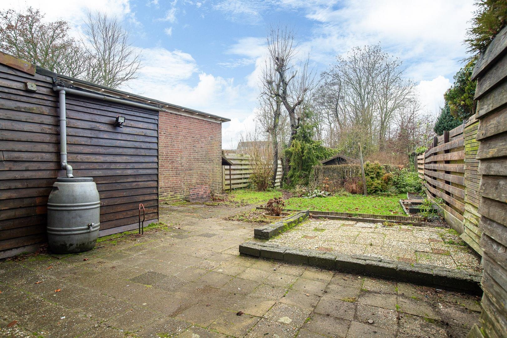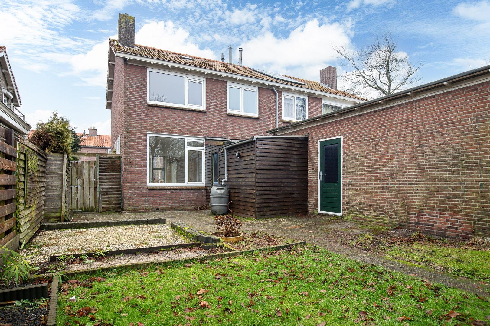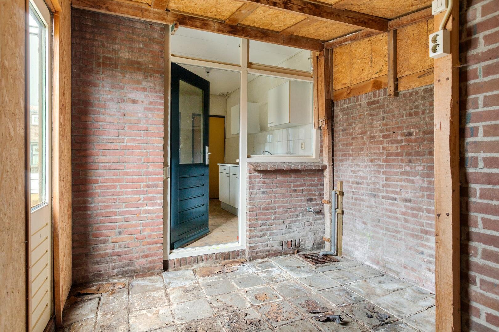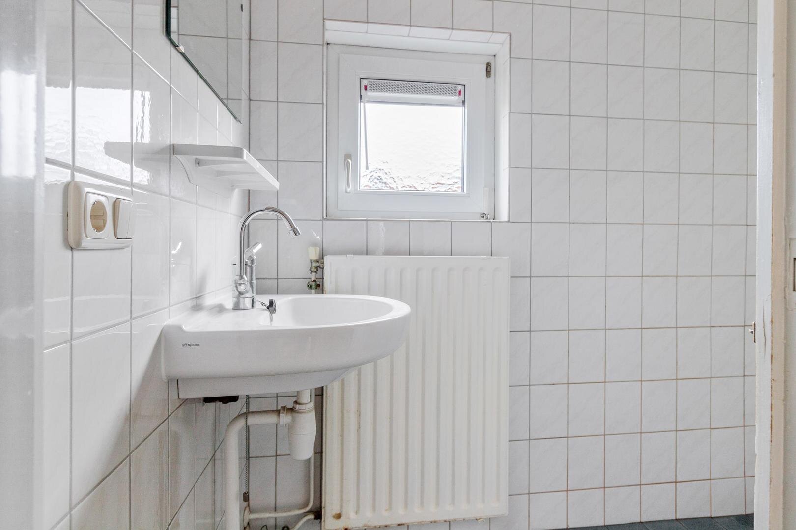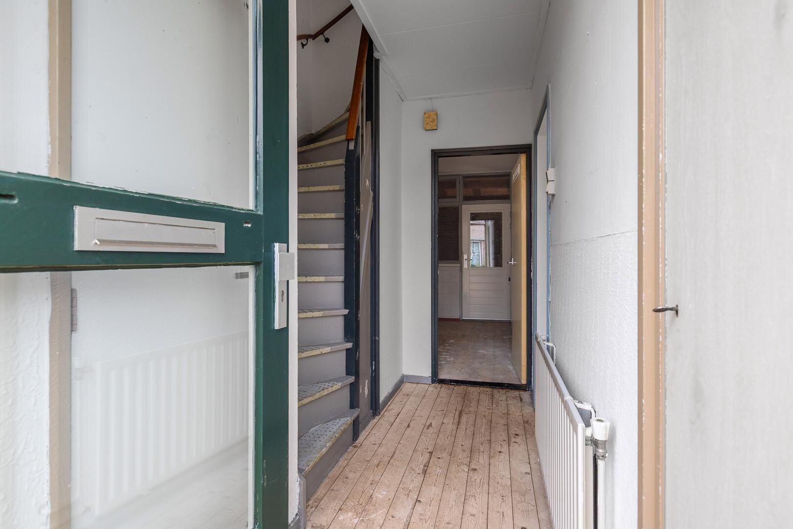 Bij binnenkomst tref je de entree met trapopgang en een toilet. De lichte woonkamer biedt voldoende ruimte voor een zithoek en een eettafel. De aangrenzende keuken is voorzien van een eenvoudig keukenblok en geeft toegang tot een aangebouwde stenen berging, handig voor extra opslag of als klusruimte.