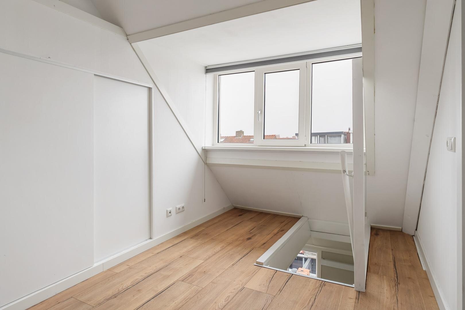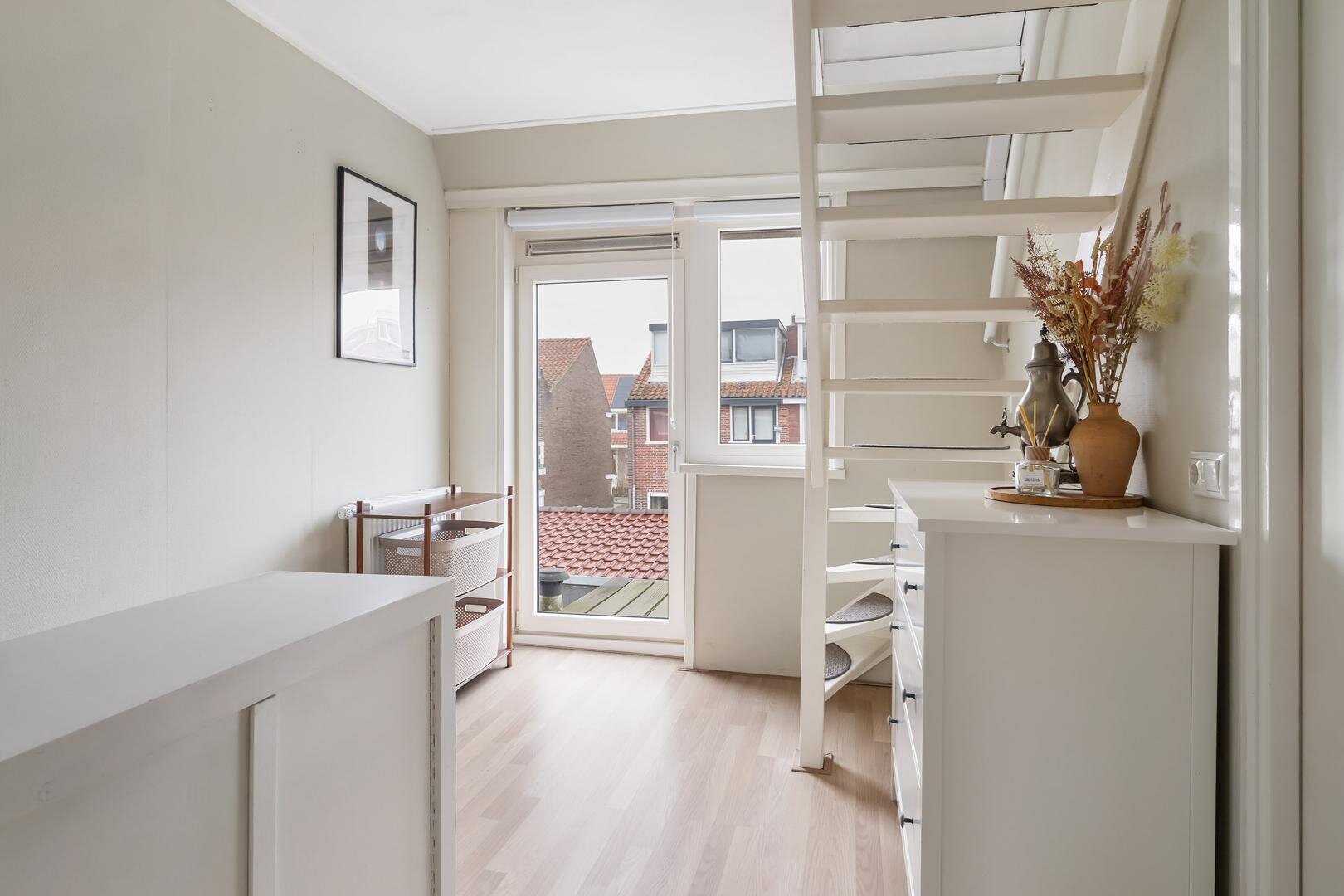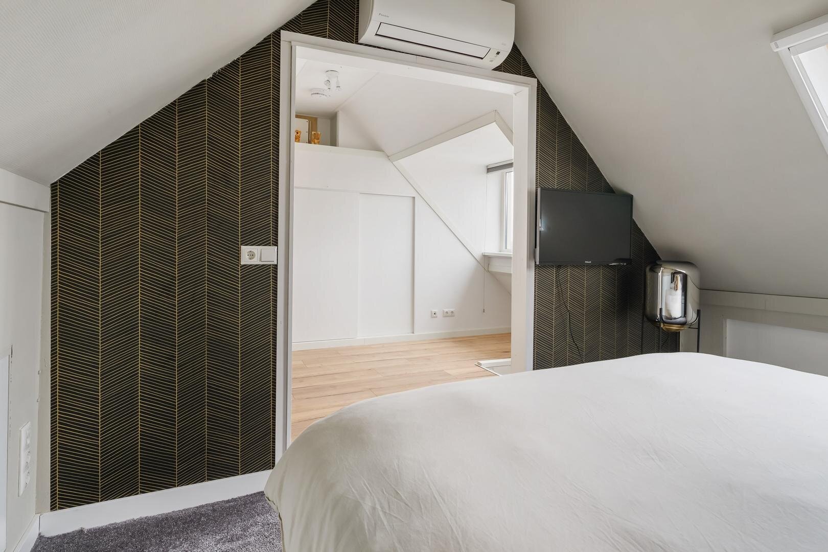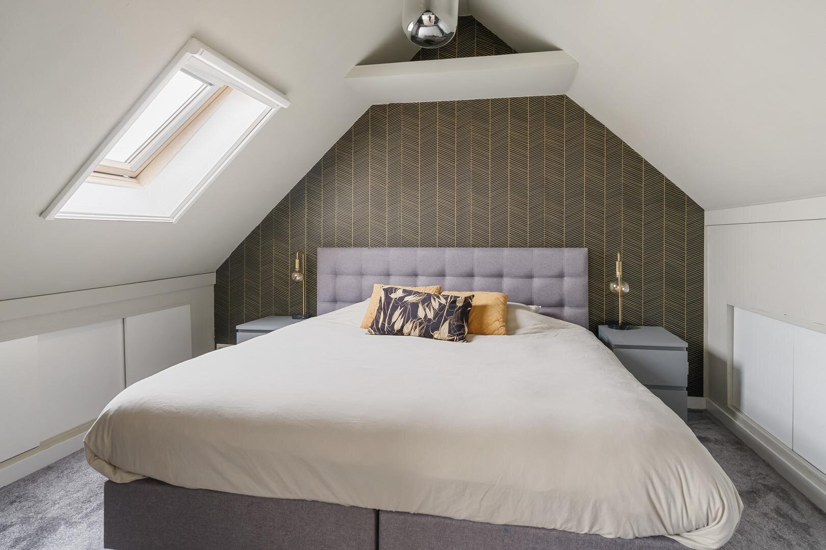 De tweede verdieping is bereikbaar via een vaste trap. Hier vind je nog een ruime slaapkamer met prettige lichtinval door o.a. dakramen en er is extra bergruimte. Ook hier is een airco aanwezig die zorgt voor verkoeling of voor verwarming. Daarnaast is de ruimte boven de steeg bij zowel de eerste als de tweede verdieping betrokken. Dit zorgt voor nét wat meer woon-/gebruiksmogelijkheden, denk aan extra werkruimte, hobbyhoek of praktische opbergplekken.