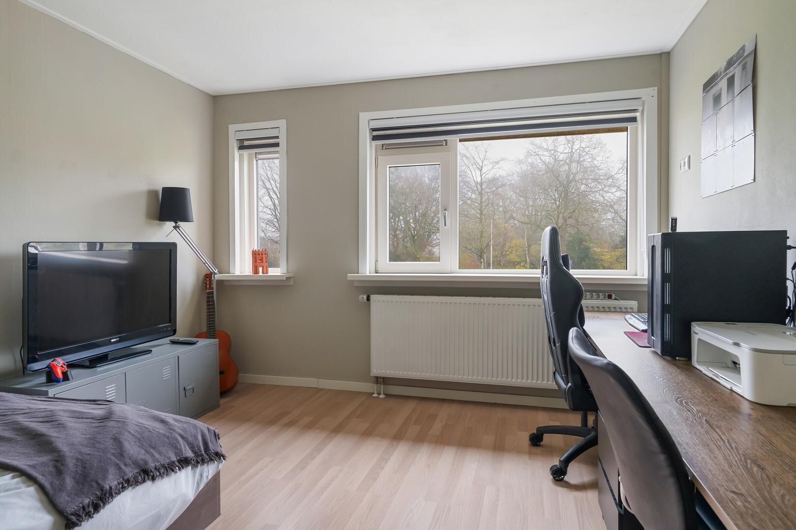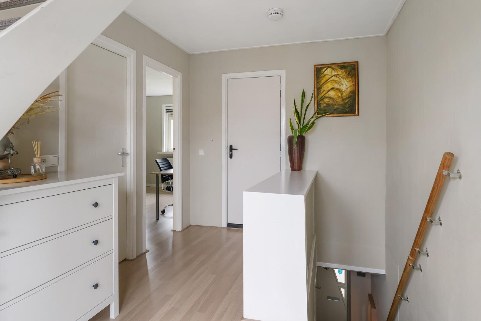 Vanaf de overloop bereik je twee slaapkamers en de badkamer. Op deze verdieping zijn in april 2023 kunststof kozijnen geplaatst; comfortabel, onderhoudsarm en een mooie extra stap richting verduurzaming.