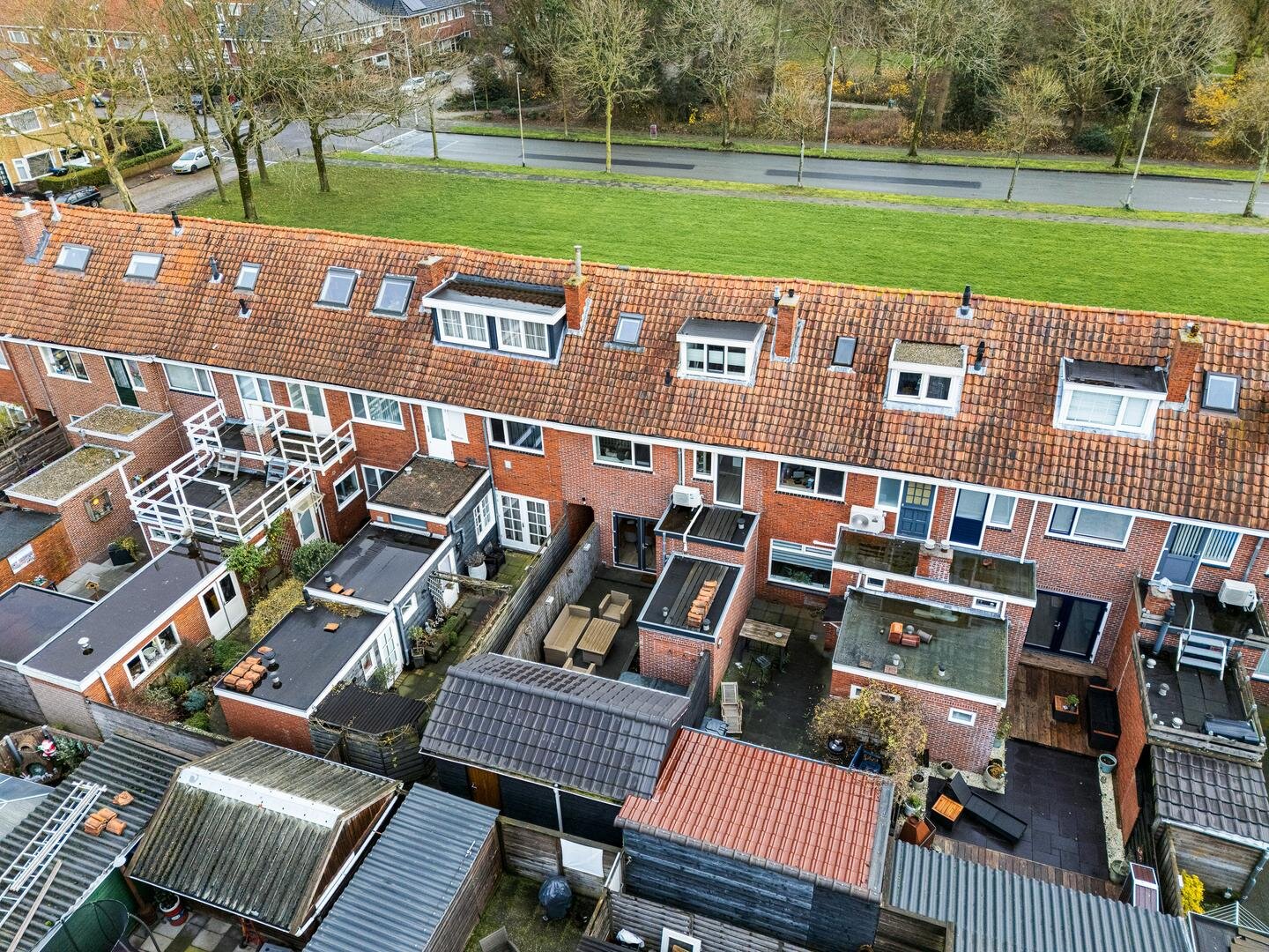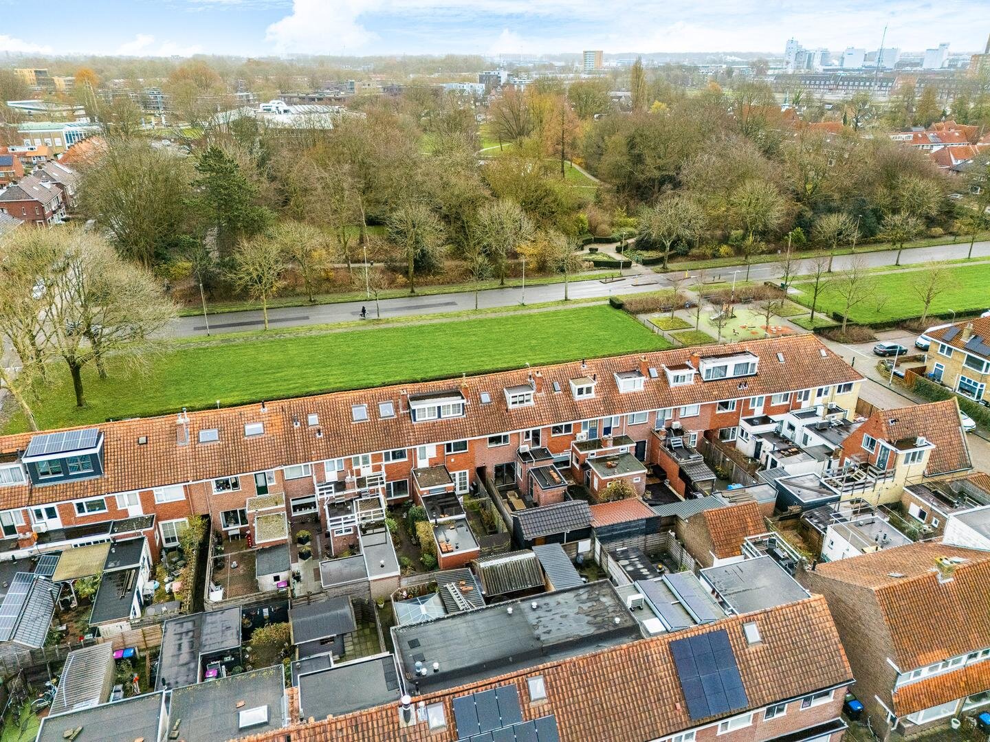 Instapklare jaren ’30 tussenwoning met vrij uitzicht op het Dr. Zamenhofpark, 12 zonnepanelen, airco's om mee te koelen én te verwarmen, kunststof kozijnen en een zonnige tuin op het westen mét jacuzzi
