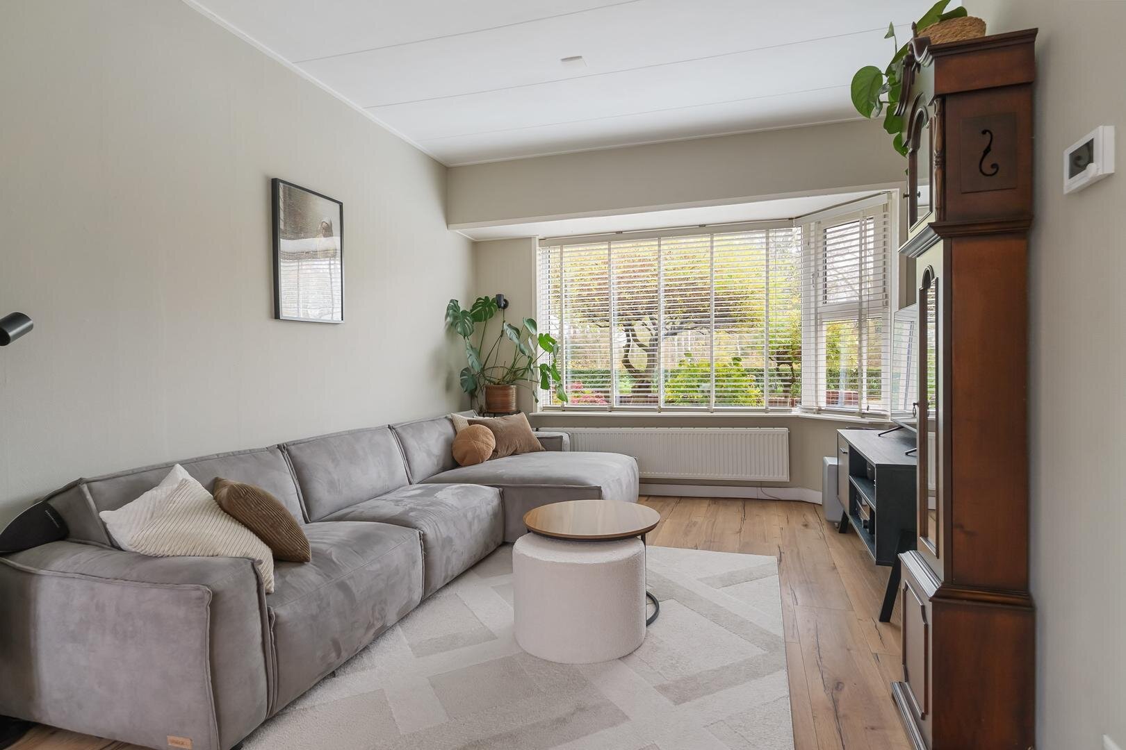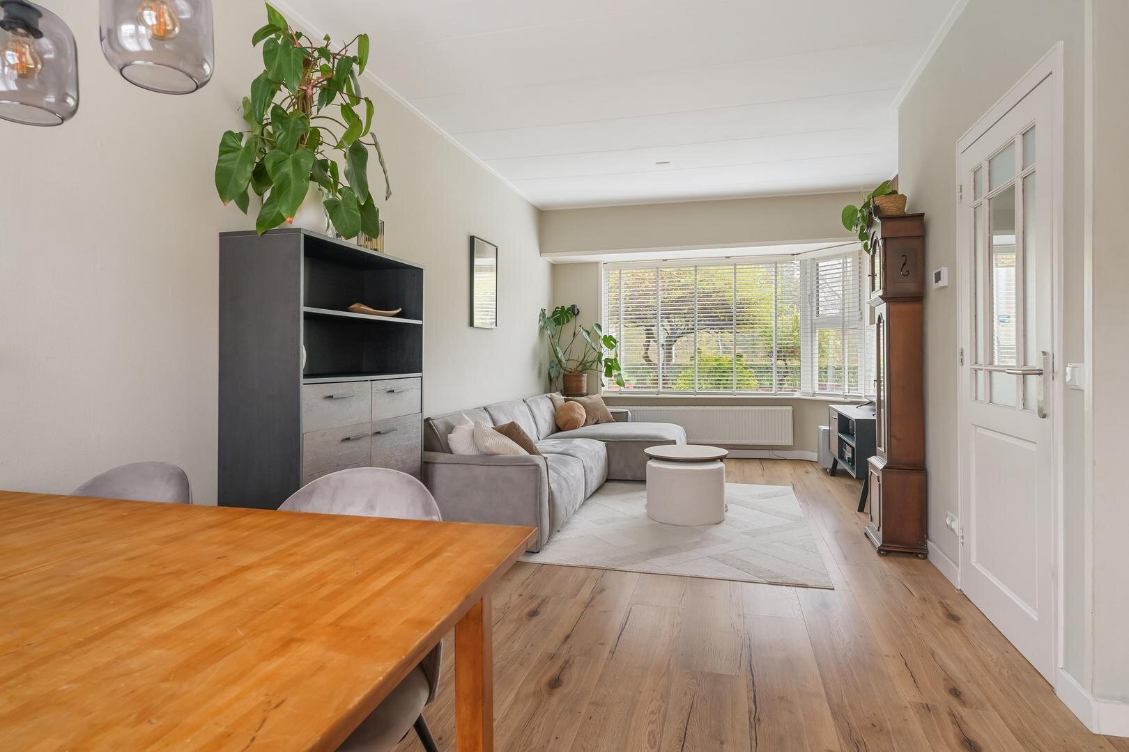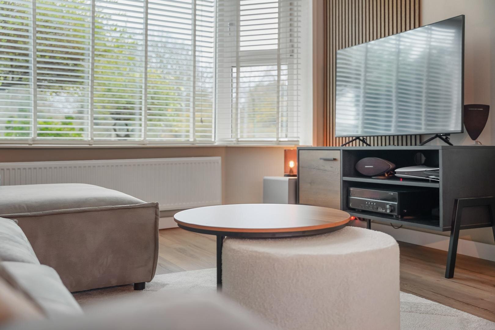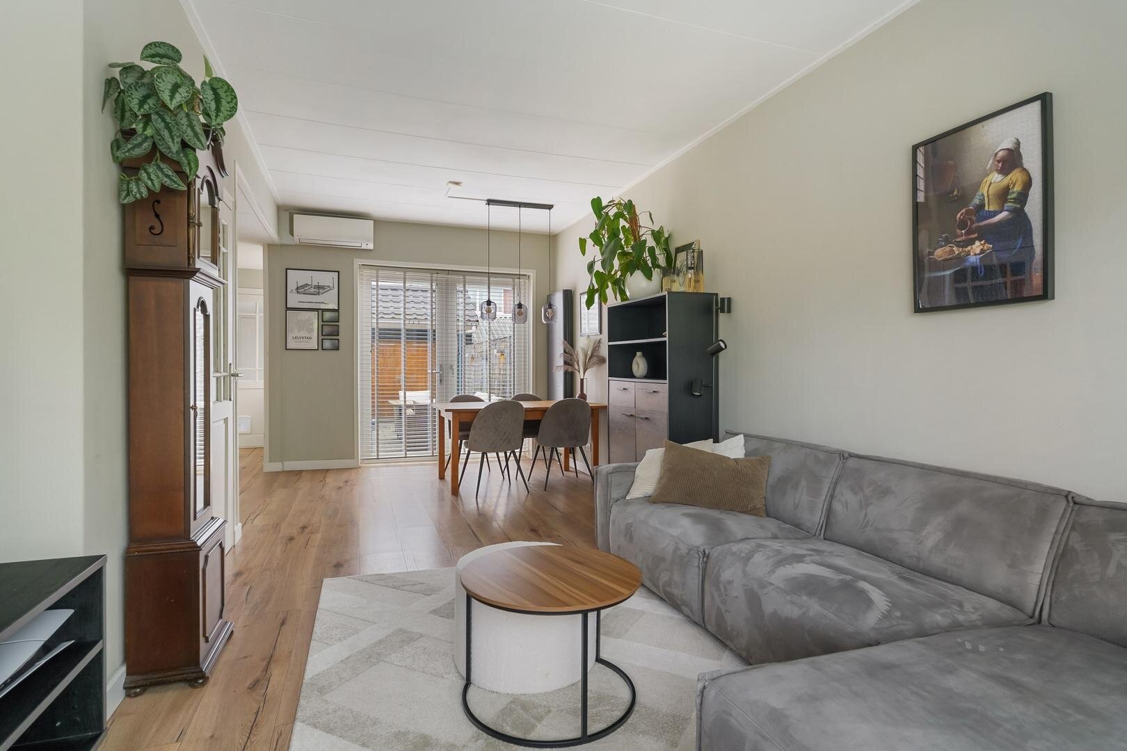 Je komt binnen in de hal met trapopgang. Direct valt op hoe licht het huis is: de doorzonwoonkamer voelt ruim en uitnodigend. Aan de voorzijde zorgt de erker voor extra sfeer en een fijne plek voor een zitje met uitzicht op het park. Aan de achterzijde geven de grote raampartijen en de openslaande deuren een open, moderne woonbeleving. Op zonnige dagen zet je de deuren open en betrek je de tuin moeiteloos bij je woonkamer. Wordt het je te warm? De airco zorgt op warme dagen voor de nodige verkoeling.