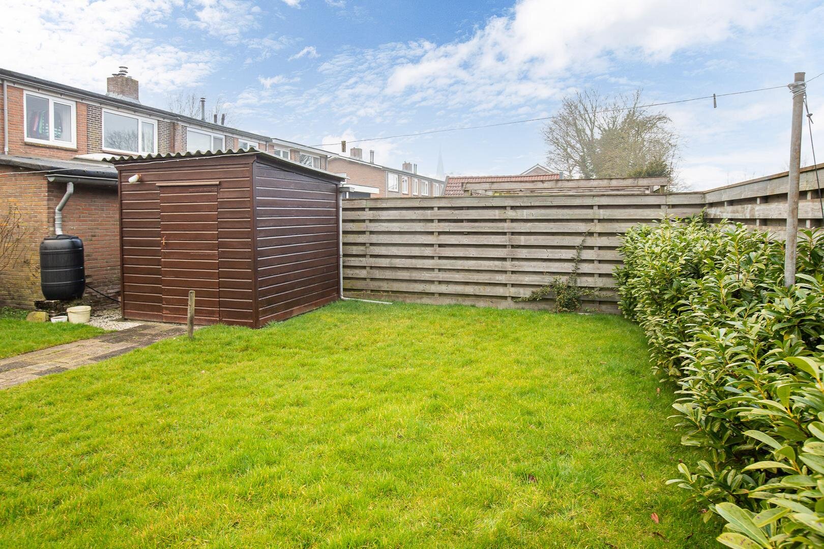 Voorhuis heb je een knusse voortuin. Achter huis heb je een wat grotere tuin met wat meer mogelijkheden. Maak je vingers een keer groen en in no-time heb je hier een gezellige achtertuin en de mogelijkheid om hier een leuke barbecue te organiseren. Of het nou een winter- of zomer-barbecue is. In de achtertuin staat ook nog een berging van ongeveer 7 vierkante meter.