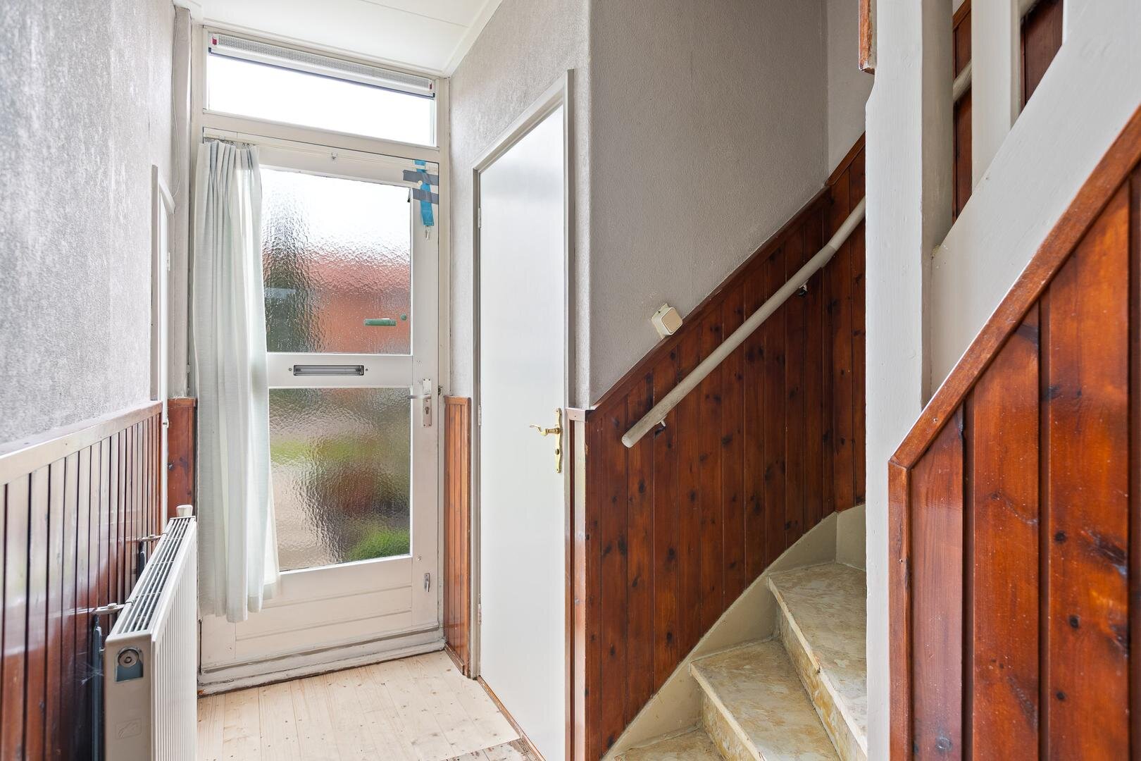 Welkom in de hal, waar je direct toegang hebt tot het toilet en de trap naar boven - details daarover volgen zo. De benedenverdieping is opgedeeld in twee ruimtes: een woonkamer met ruimte voor een comfortabele zithoek en een keuken. Hoewel de ruimtes een basisuitstraling hebben, biedt de indeling voldoende mogelijkheden om de benedenverdieping een persoonlijke touch te geven.