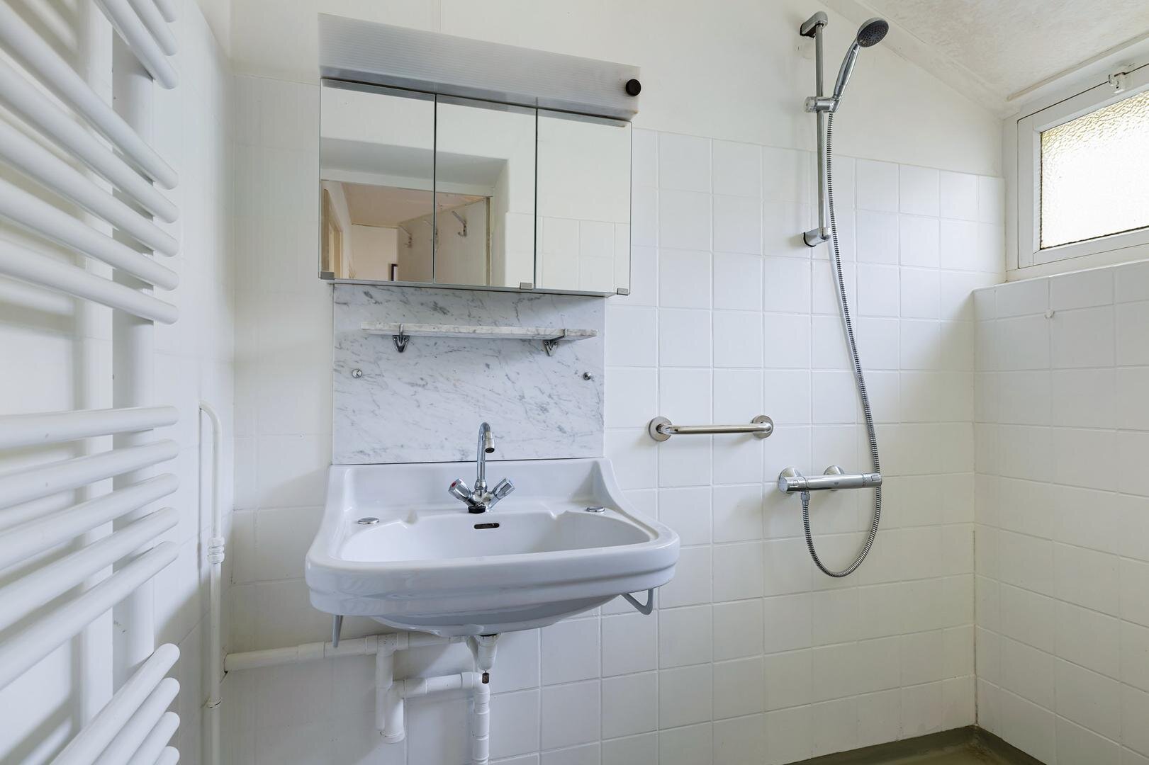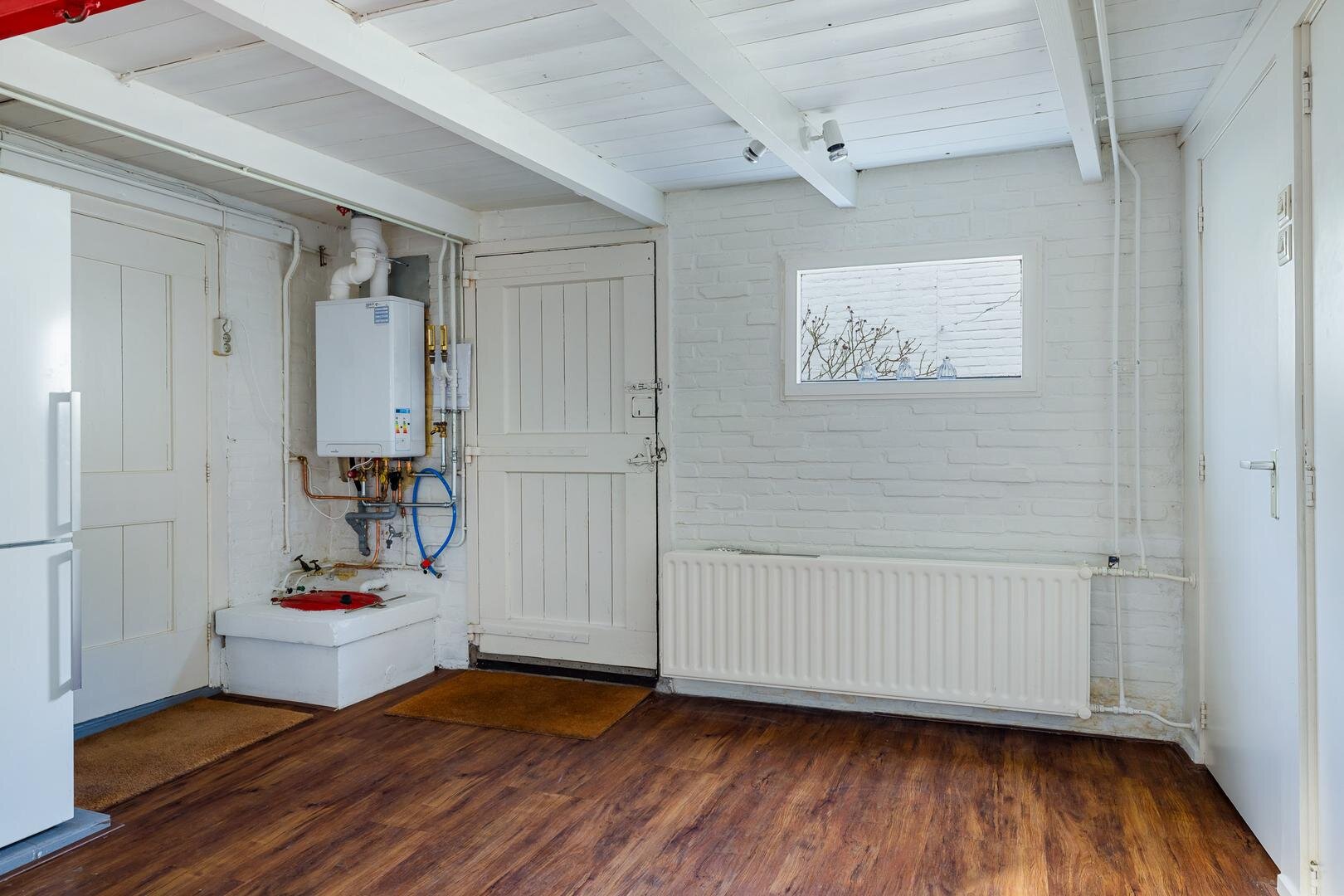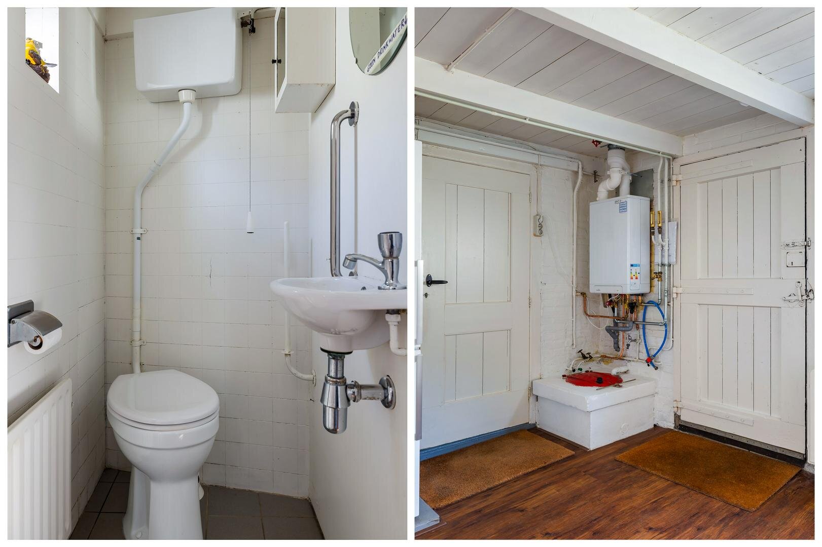 Verder bevindt zich op de begane grond een douche met wastafel, een bijkeuken met pvc-vloer, wasmachineaansluiting, gasaansluiting, toilet, bergkast en opstelling van de CV-ketel. Desgewenst is er de mogelijkheid om op de begane grond een extra (vijfde) slaapkamer te realiseren.