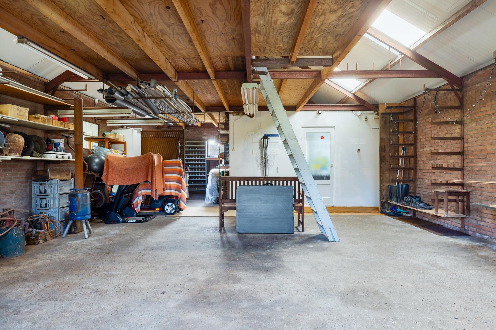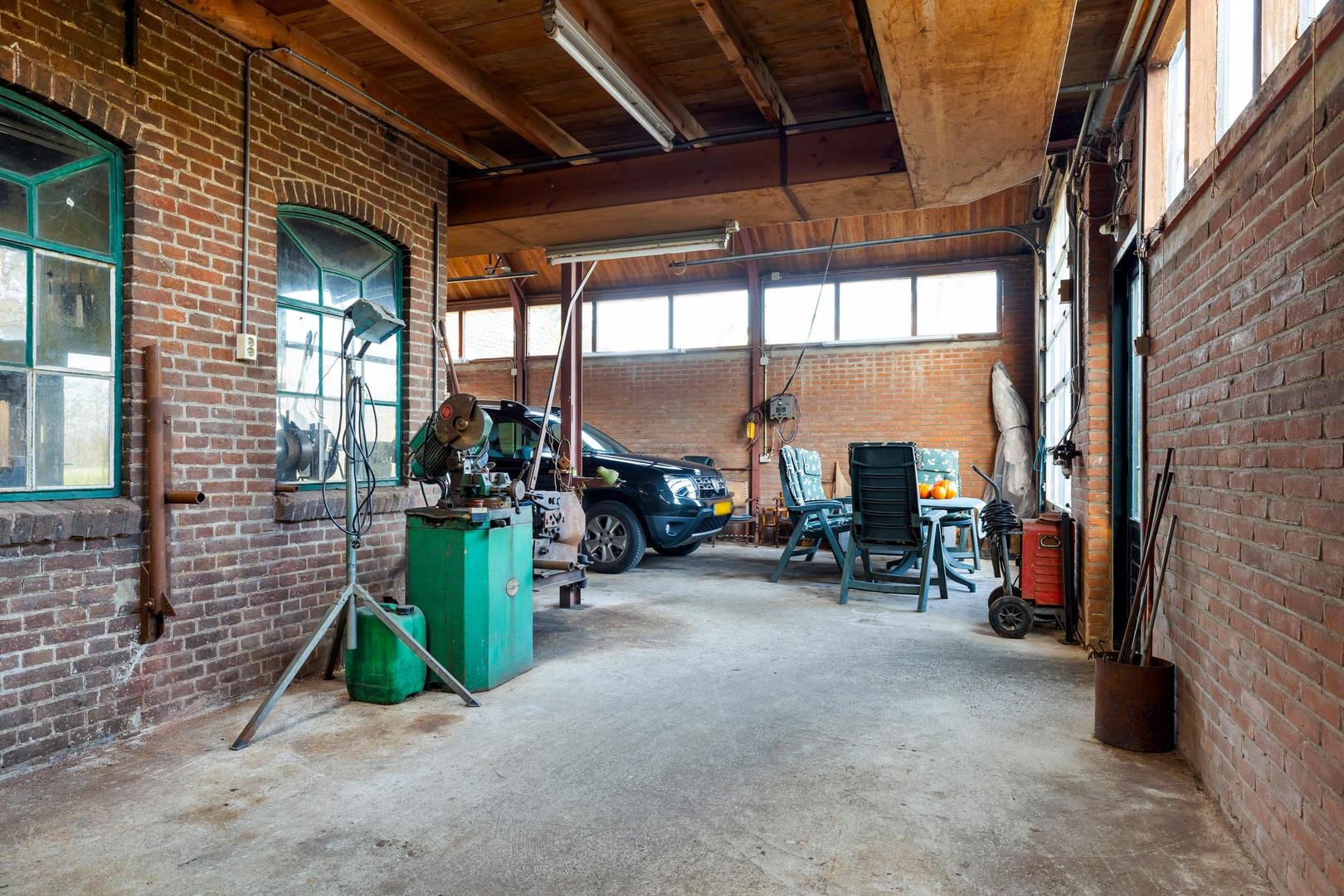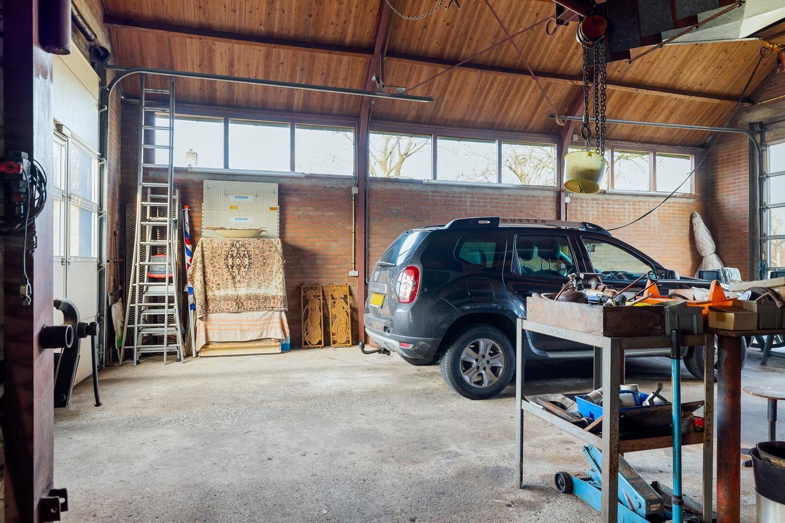 Rondom de woning ligt een ruime tuin met volop privacy. De achtertuin is gelegen op het zuidoosten, deels omgeven door een beukenhaag en beschikt over een charmante, ommuurde binnentuin met bloembakken. De royale oprit biedt parkeergelegenheid voor meerdere auto’s, evenals het achtergelegen betonnen terrein. De diverse bijgebouwen en overkappingen maken het geheel uitermate geschikt voor hobbyisten, ondernemers aan huis of verzamelaars.