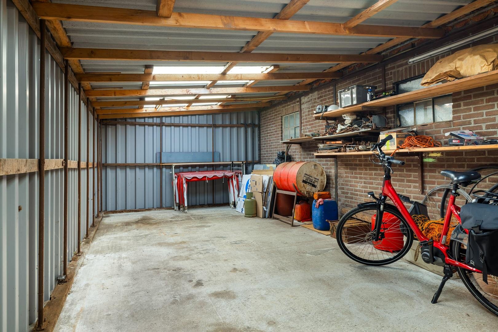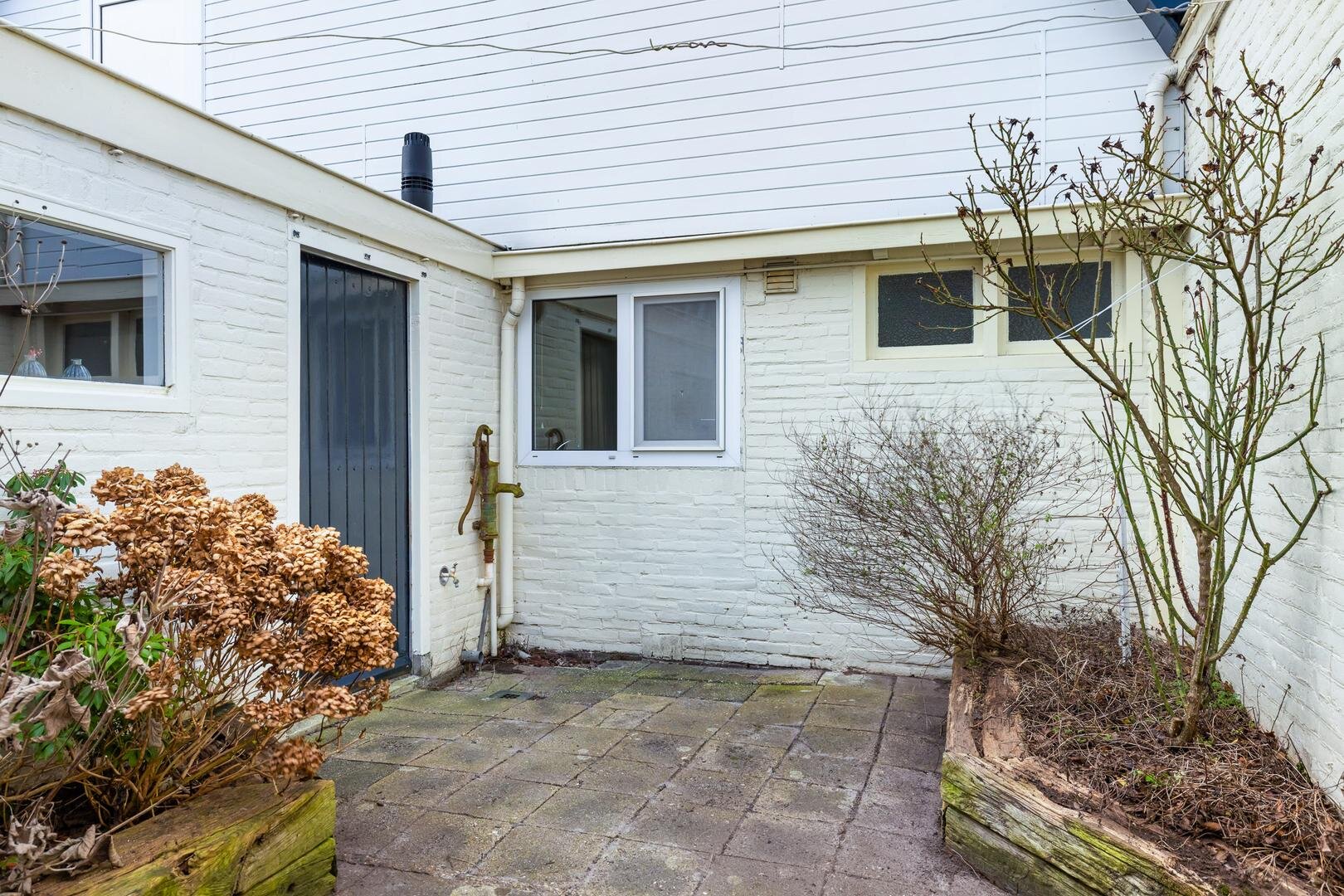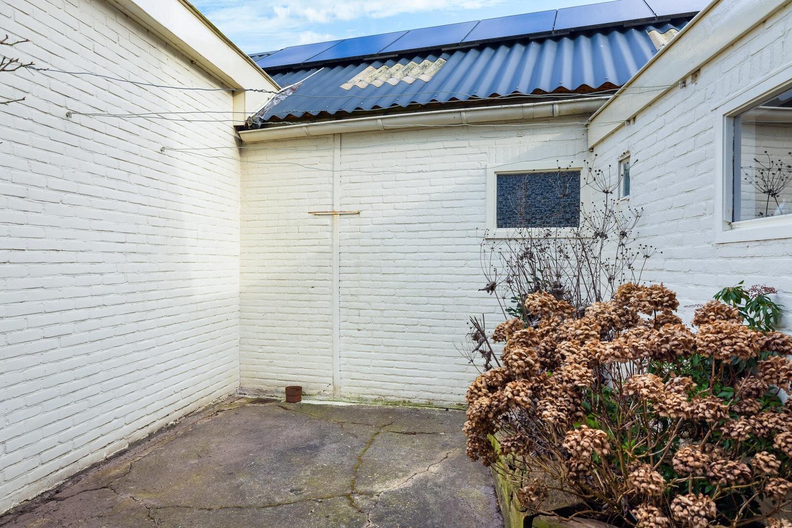 Rondom de woning ligt een ruime tuin met volop privacy. De achtertuin is gelegen op het zuidoosten, deels omgeven door een beukenhaag en beschikt over een charmante, ommuurde binnentuin met bloembakken. De royale oprit biedt parkeergelegenheid voor meerdere auto’s, evenals het achtergelegen betonnen terrein. De diverse bijgebouwen en overkappingen maken het geheel uitermate geschikt voor hobbyisten, ondernemers aan huis of verzamelaars.