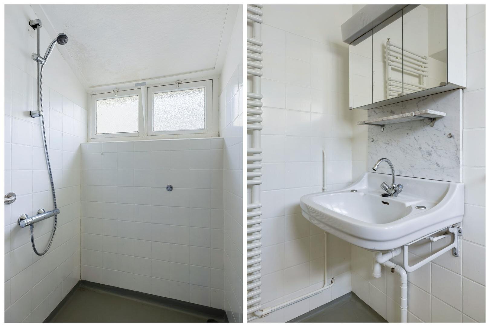 Op de verdieping bevinden zich een overloop, vier slaapkamers en een badkamer met douche, thermostaatkraan, tweede toilet en wastafel. Het sanitair is van goede kwaliteit (Villeroy & Boch).