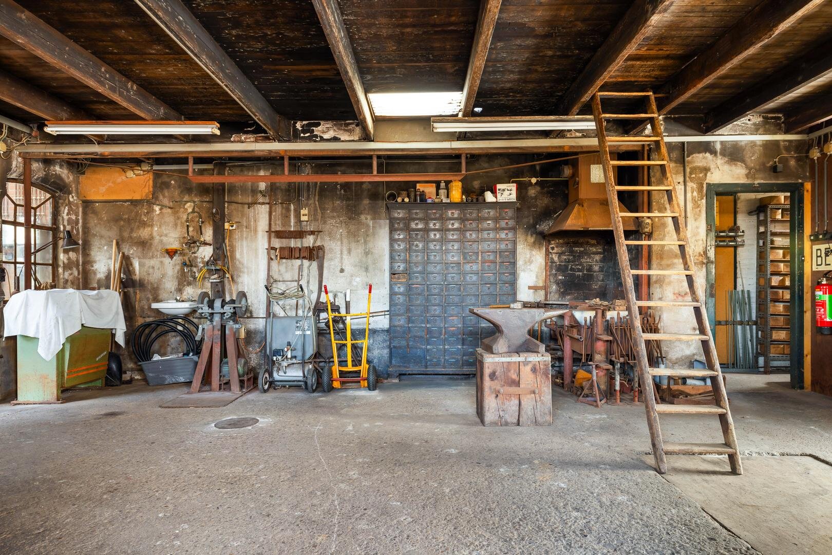 De woning is traditioneel gebouwd met steensmuren, deels houten en deels betonnen vloeren en hardhouten kozijnen met HR-beglazing aan de westzijde. De aanbouwen zijn uitgevoerd in steens- en halfsteens gevels met betonnen vloeren. De daken zijn deels plat (bitumineuze dakbedekking) en deels uitgevoerd als zadeldak met dakpannen of geïsoleerde golfplaten. Het zadeldak van de smederij is in 2013 gerenoveerd en voorzien van nieuwe panlatten.