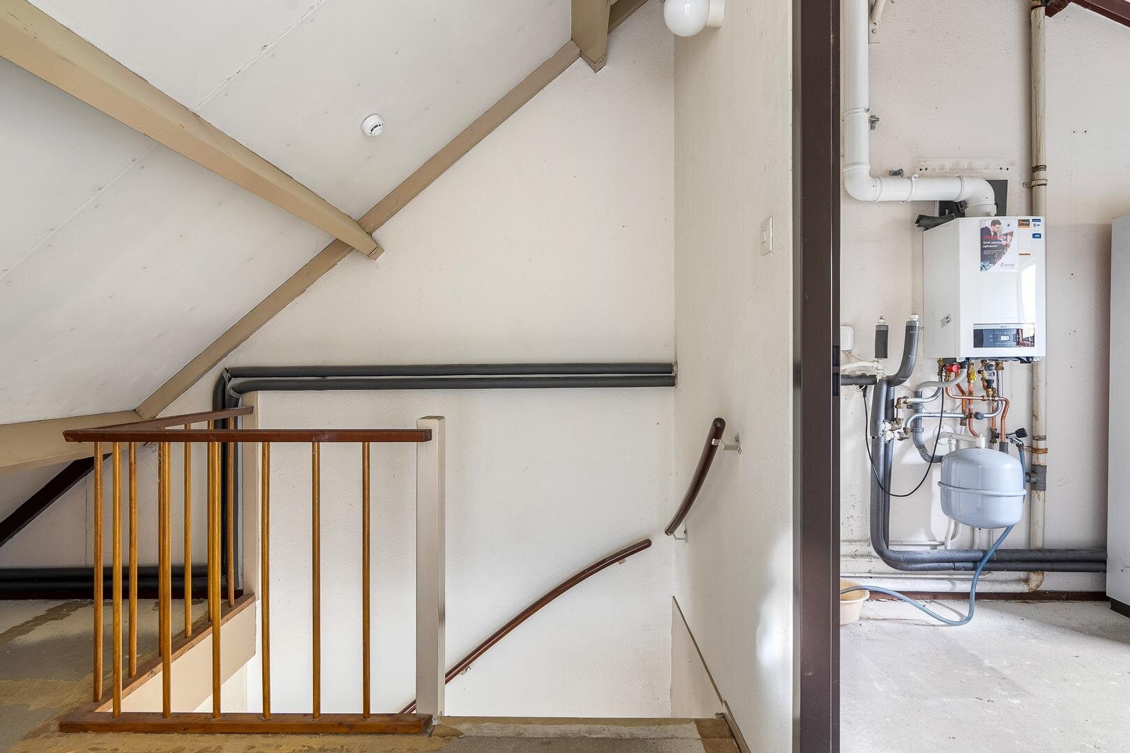 De tweede verdieping beschikt over een overloop en een derde ruime slaapkamer. Deze kamer is uitstekend te gebruiken als hoofdslaapkamer, werkkamer of logeerruimte. De andere kamer op deze verdieping is multifunctioneel te gebruiken als berging, kledingkamer of hobbyruimte. Hier is ook de CV ketel (Nefit 2017) te vinden.