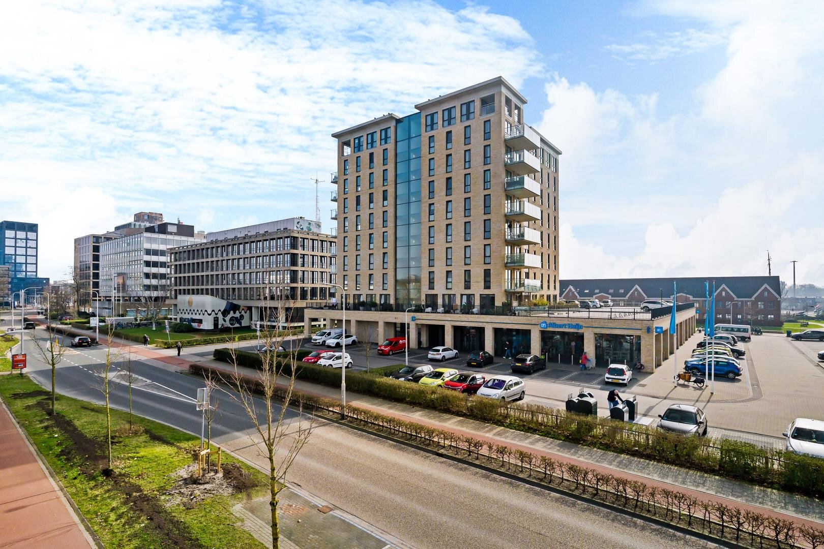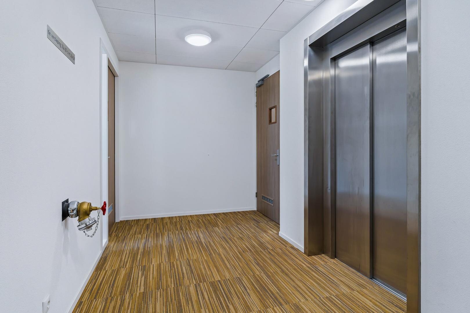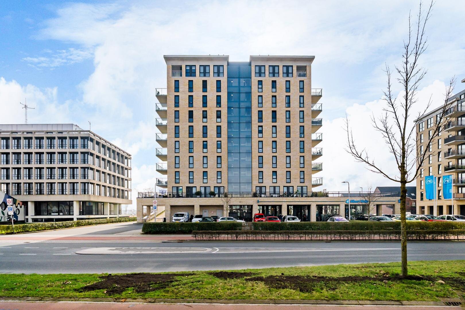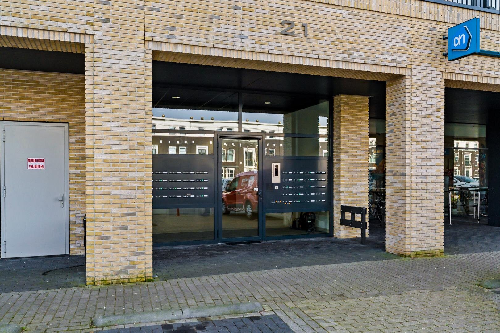 De entree van het complex ligt aan de straatzijde, direct naast de supermarkt. Via de centrale hal met brievenbussen, video-intercom, trappenhuis en lift bereikt u het appartement. Op de begane grond beschikt u over een praktische berging, ideaal voor fietsen of opslag.
