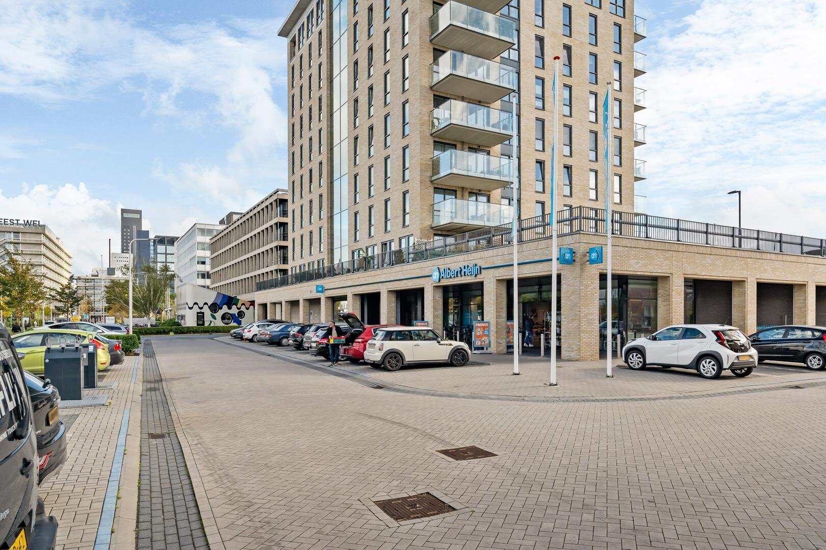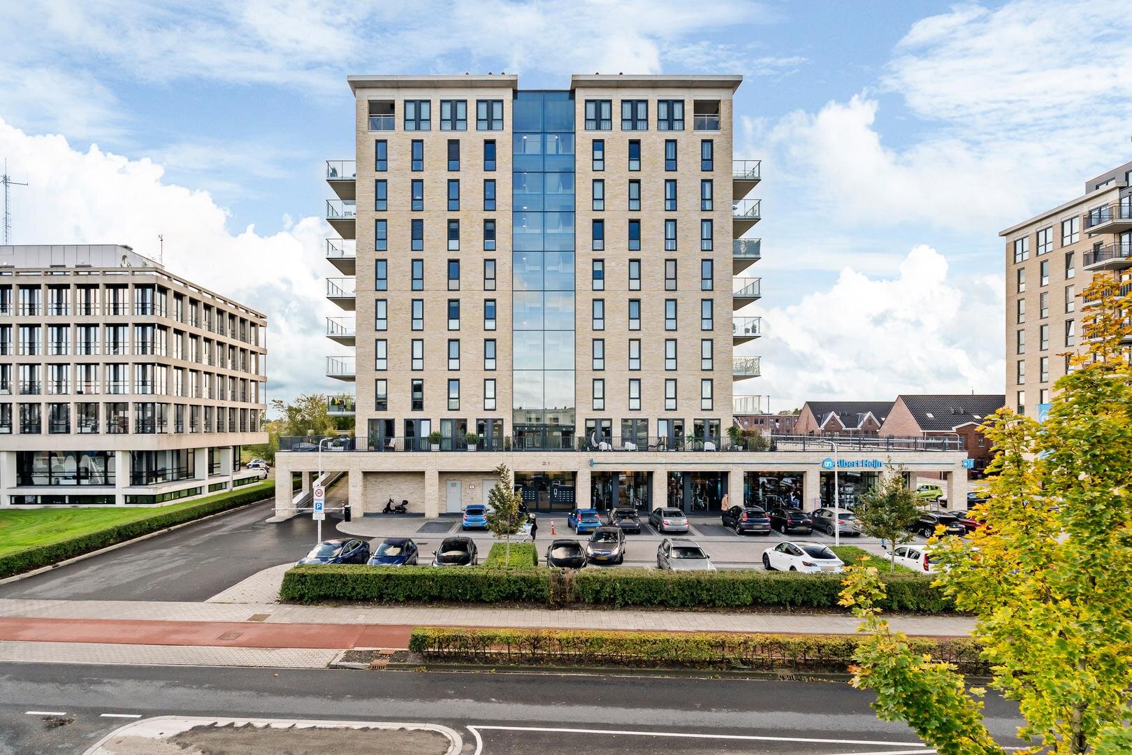 De entree van het complex ligt aan de straatzijde, direct naast de supermarkt. Via de centrale hal met brievenbussen, video-intercom, trappenhuis en lift bereikt u het appartement. Op de begane grond beschikt u over een ruime berging, ideaal voor fietsen of opslag.