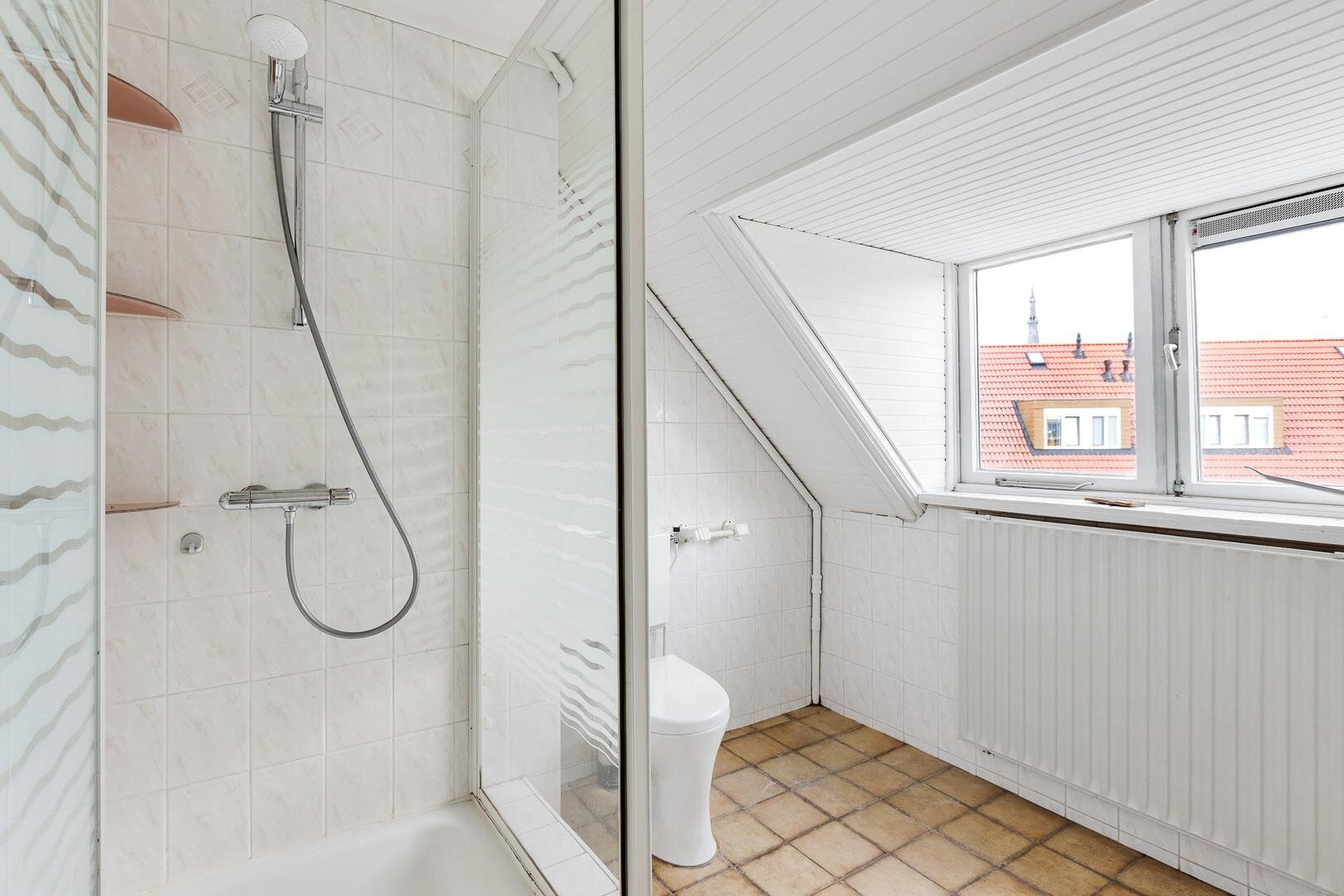 Overloop met aangrenzend drie slaapkamers, waarvan één met vaste kasten. Badkamer met douche, wastafel, wasmachine aansluiting en 2e toilet.