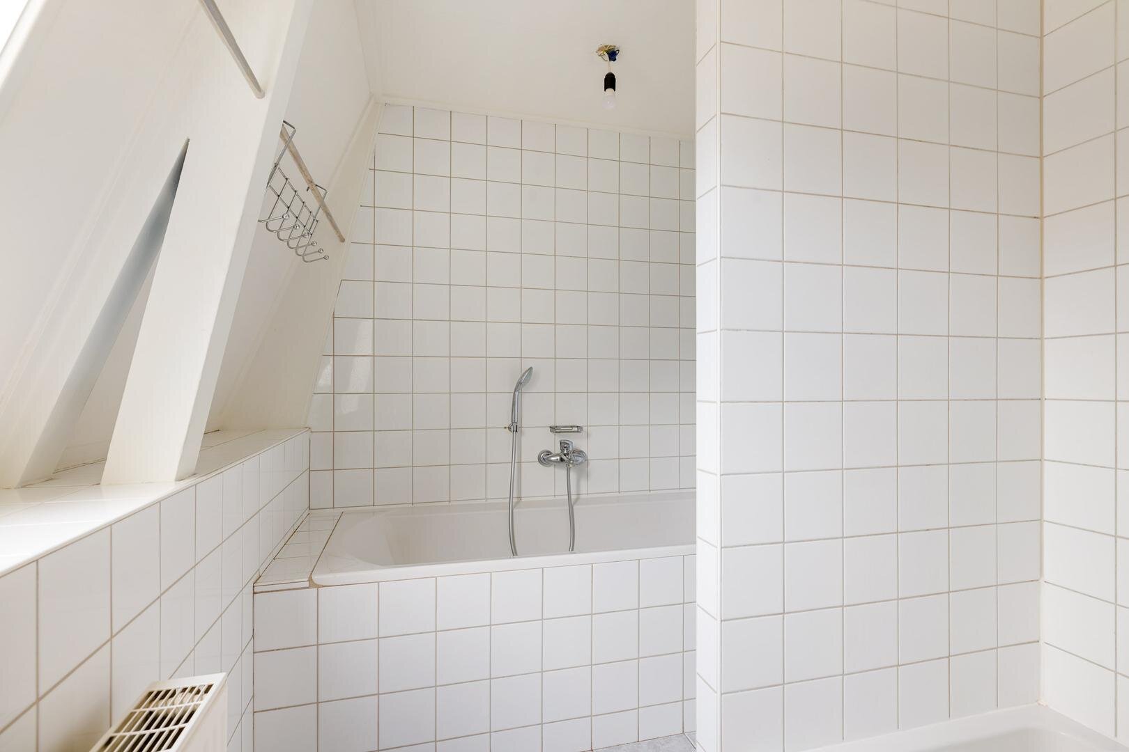 - Een complete badkamer met ligbad, inloopdouche, toilet en wastafel.