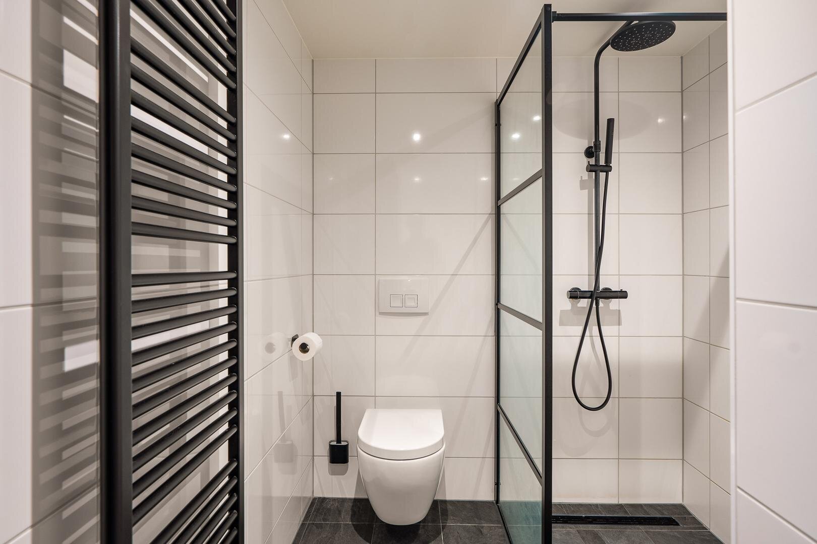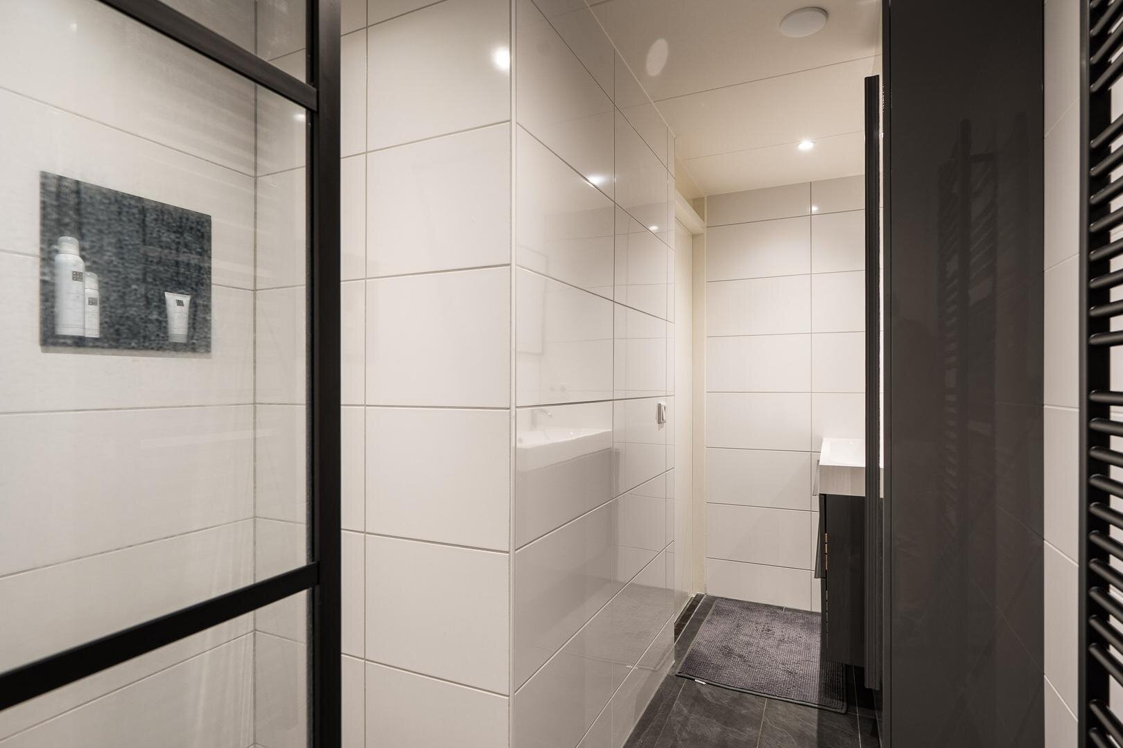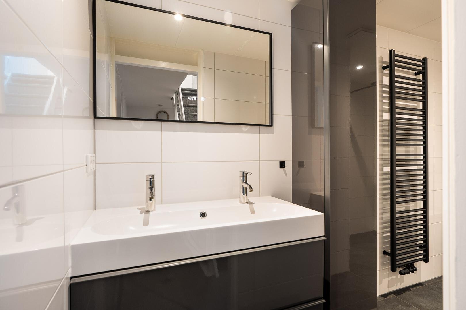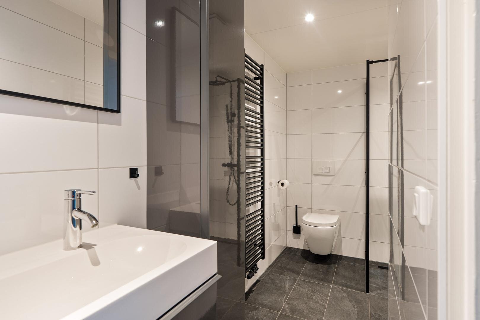 1e Verdieping: overloop, 3 ruime slaapkamers waarvan de 2 slaapkamers aan de achterzijde met een dakkapel, alle slaapkamer zijn voorzien van geïntegreerde rolluiken. Een vernieuwde, betegelde badkamer van 2022 met inloopdouche, hangend closet, wastafelmeubel met twee fonteintjes en badkamerradiator.