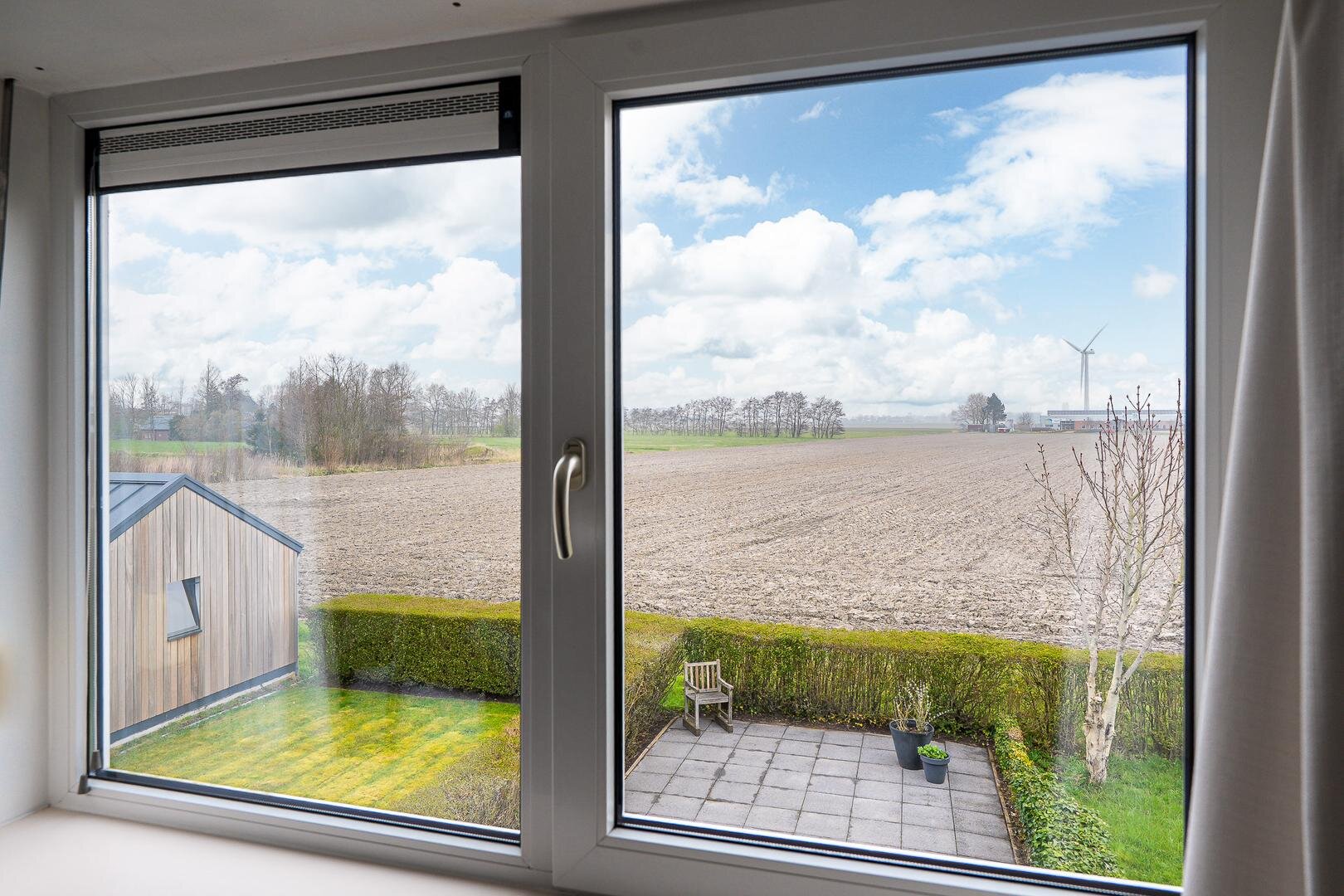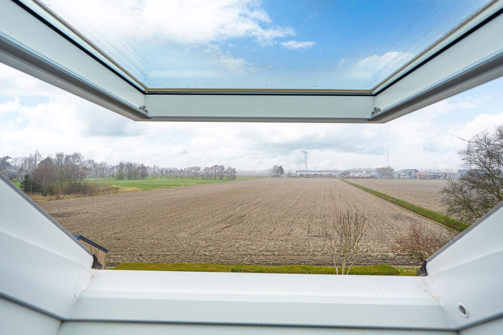 Begane grond: entree/hal met garderobe, moderne toiletruimte mat wandcloset en fonteintje, tuingerichte woonkamer met schuifpui en vrij uitzicht over de landerijen, dichte keuken met dubbele keukenopstelling in moderne uitvoering en voorzien van vaatwasser, koelkast, vrieskast, combi-oven met magnetron en een M-System fornuis/oven (4-pits + 2 wokbranders!). Ruime bijkeuken met zolderberging voorzien van Velux-dakvenster.