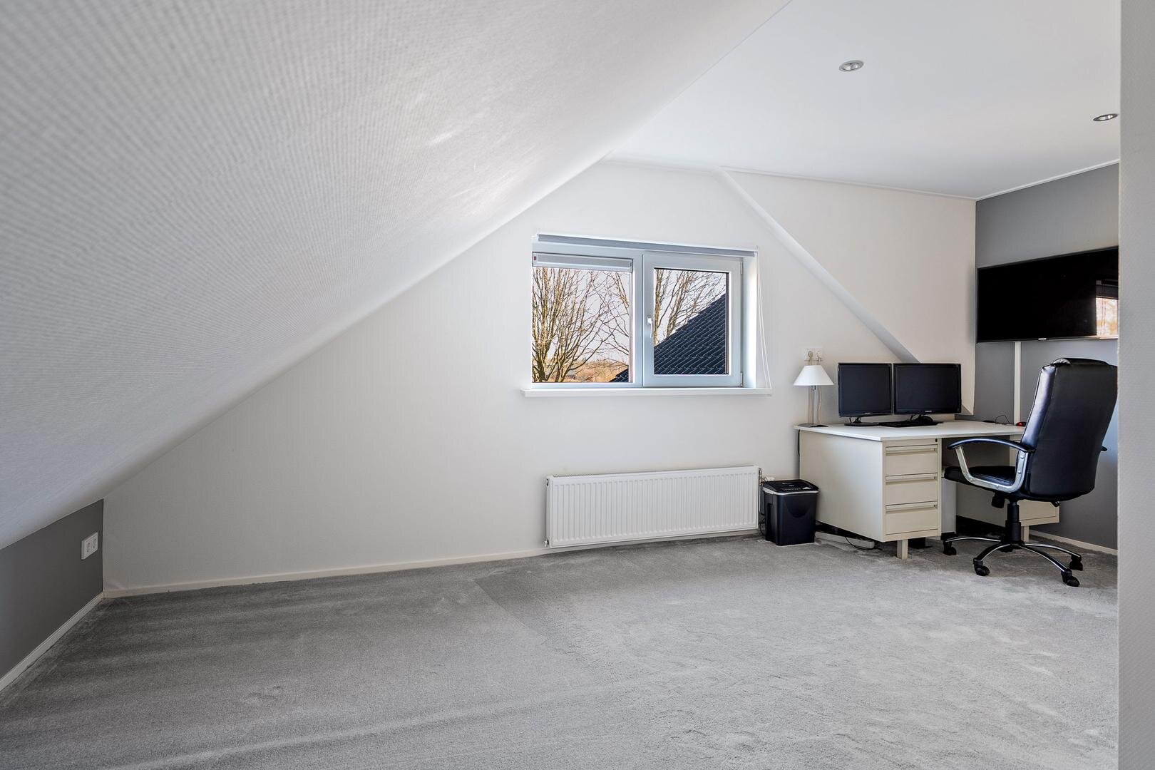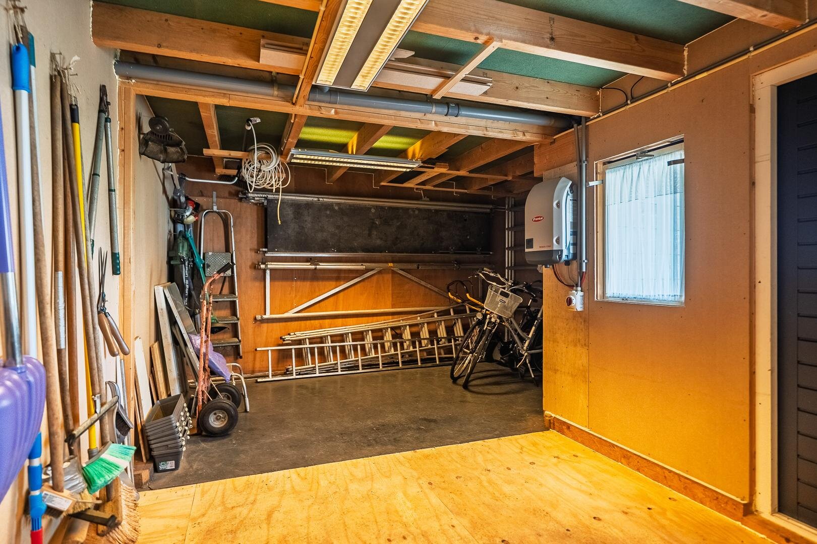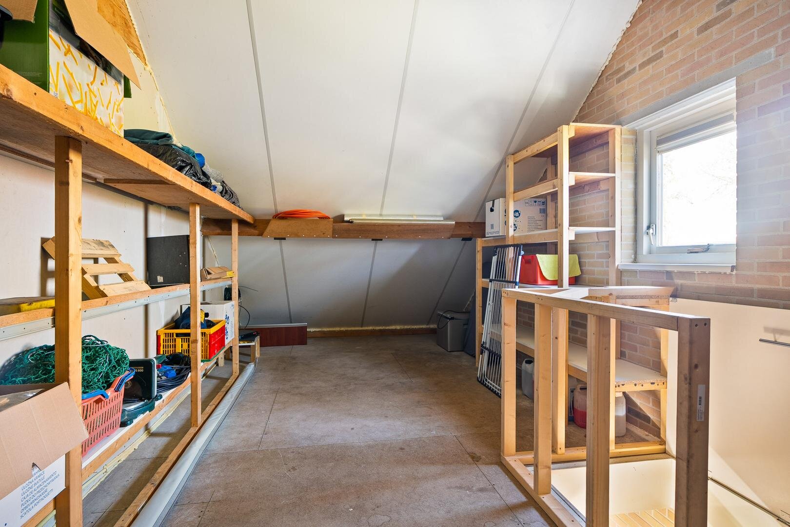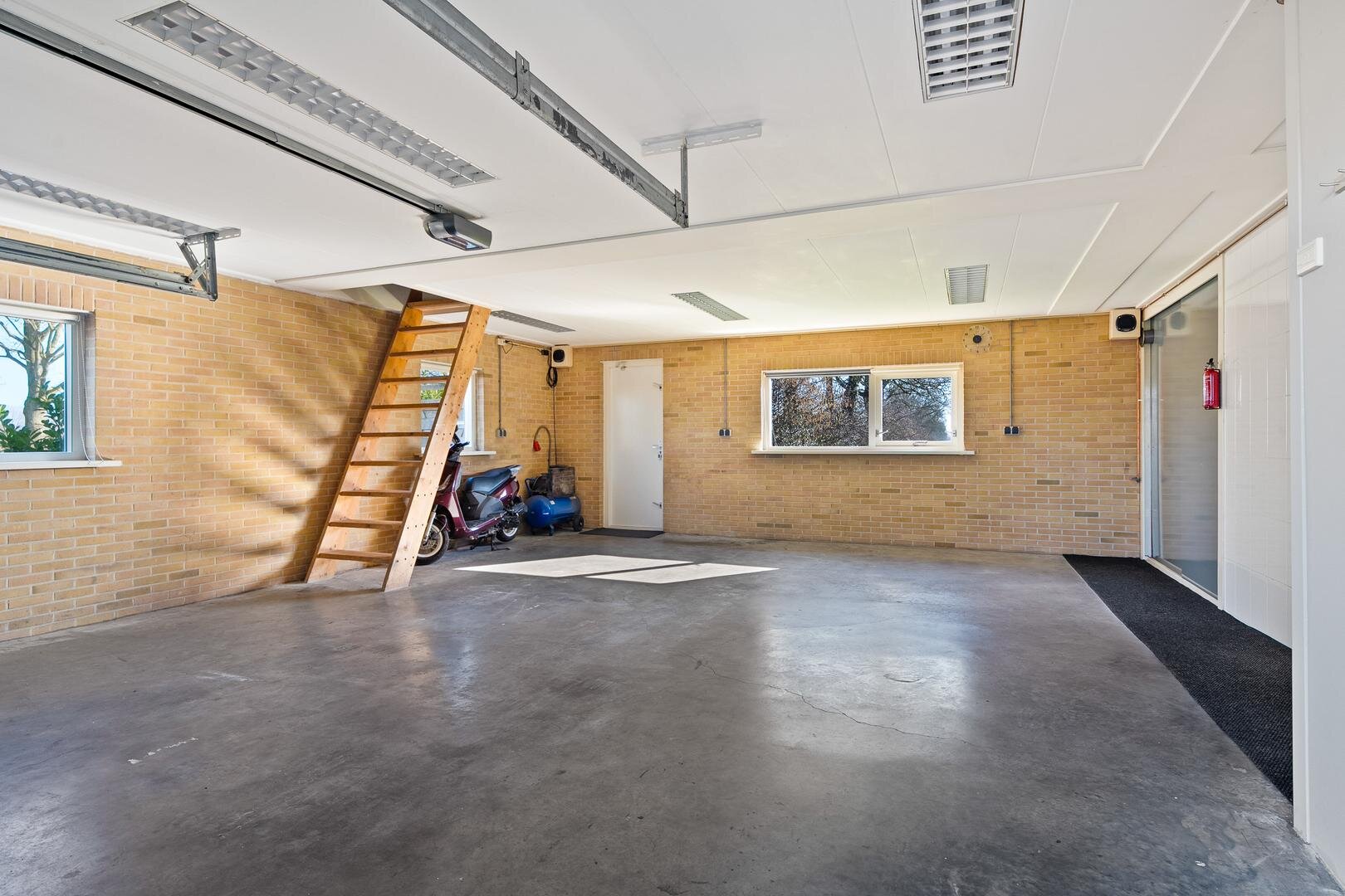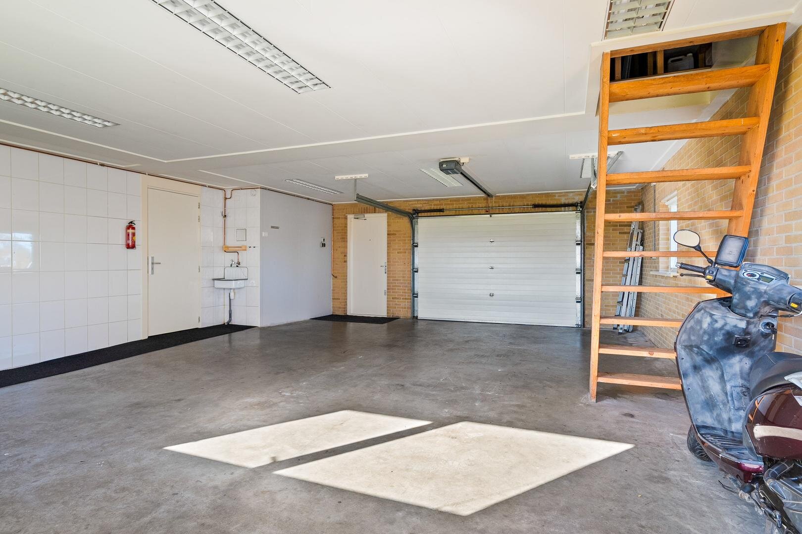 De woning beschikt over een ruime garage, ideaal voor het stallen van een auto, fietsen of het creëren van een praktische werk- of hobbyruimte. De garage met spouwmuren en is voorzien van krachtstroom, een elektrische garagedeur, wat zorgt voor extra comfort en gebruiksgemak. Boven de garage bevindt zich bovendien een royale zolder, die uitstekend geschikt is als extra bergruimte. Dankzij deze extra verdieping biedt de garage verrassend veel mogelijkheden en volop opslagcapaciteit.