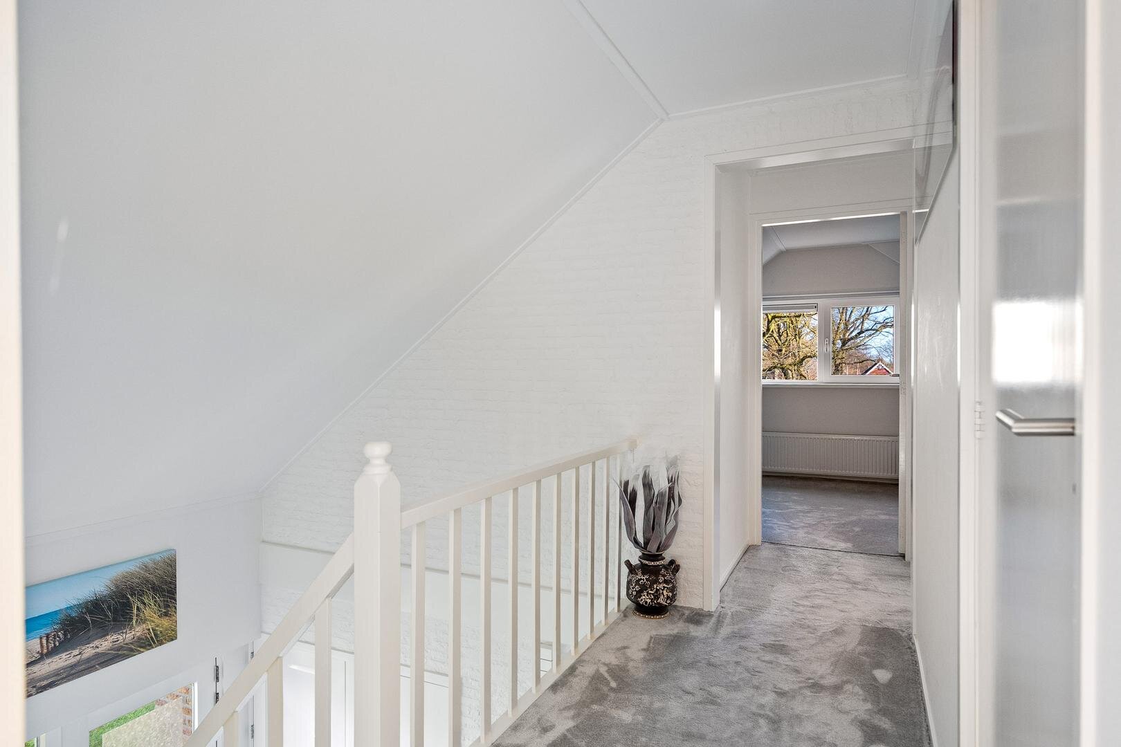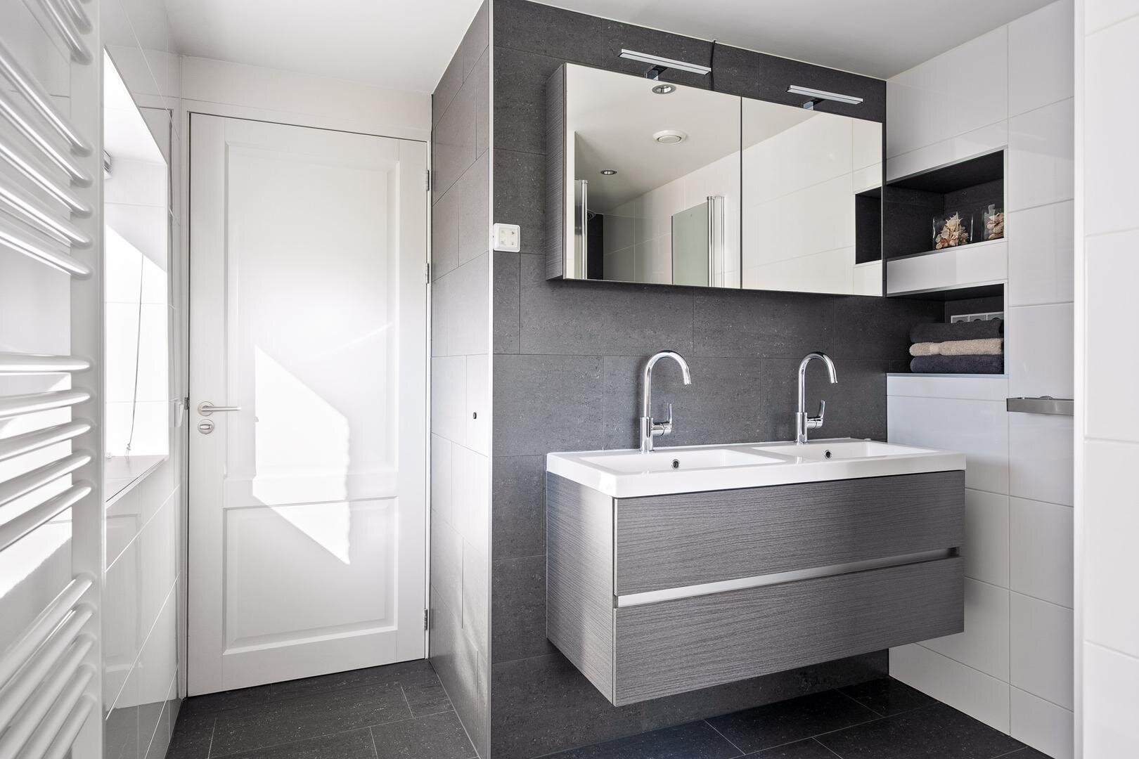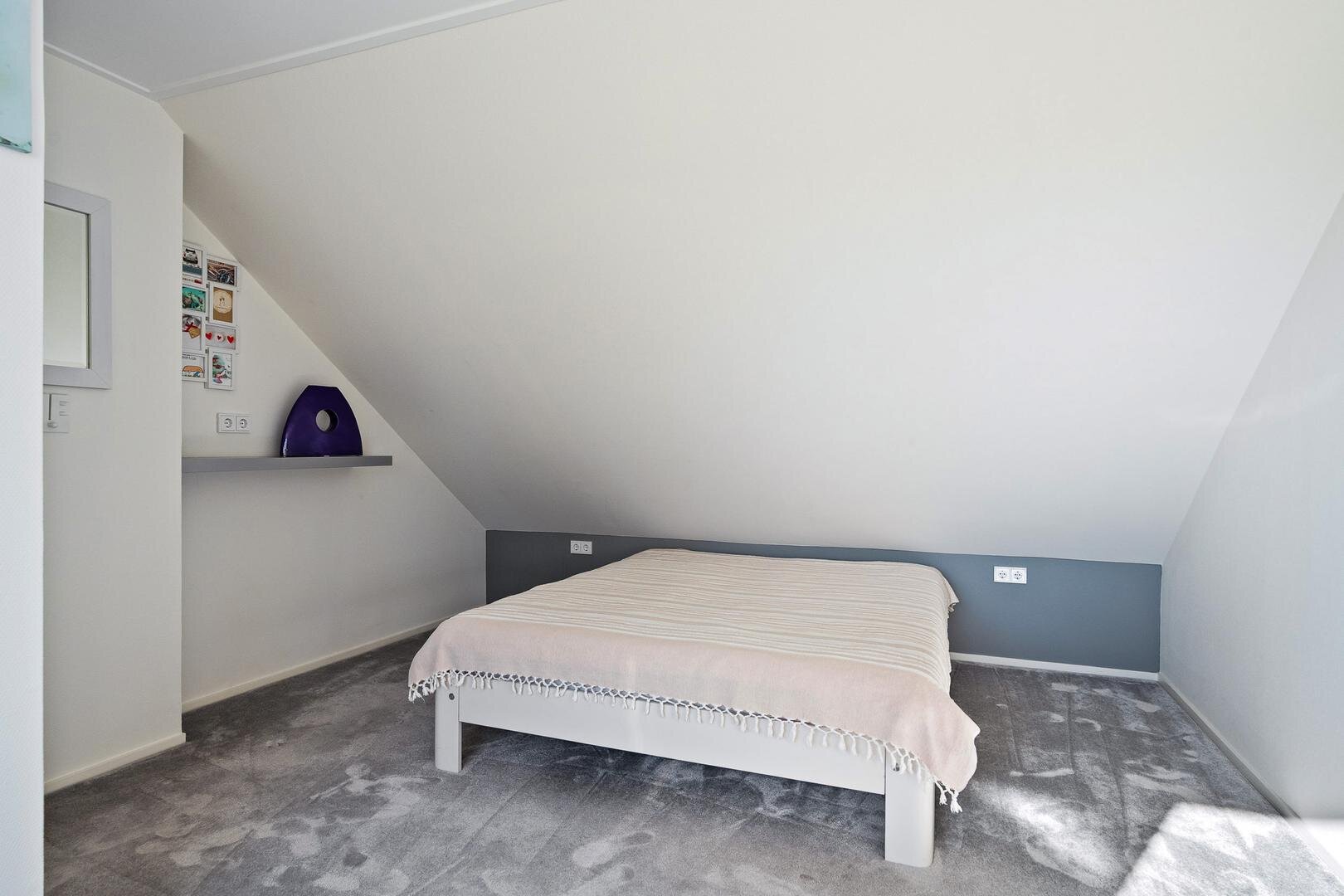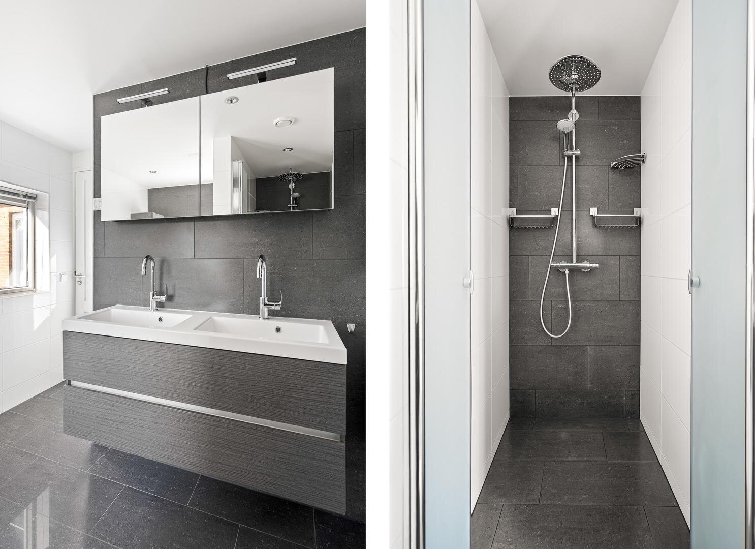 De eerste verdieping beschikt over een ruime overloop met vide, die toegang geeft tot drie royale slaapkamers. Dankzij de dakkapellen zijn de kamers ruim en licht. Daarnaast bevindt zich op deze verdieping een tweede badkamer, voorzien van een toilet en een wastafelmeubel. Extra praktisch zijn de drie handige inloopkasten die zorgen voor volop bergruimte.