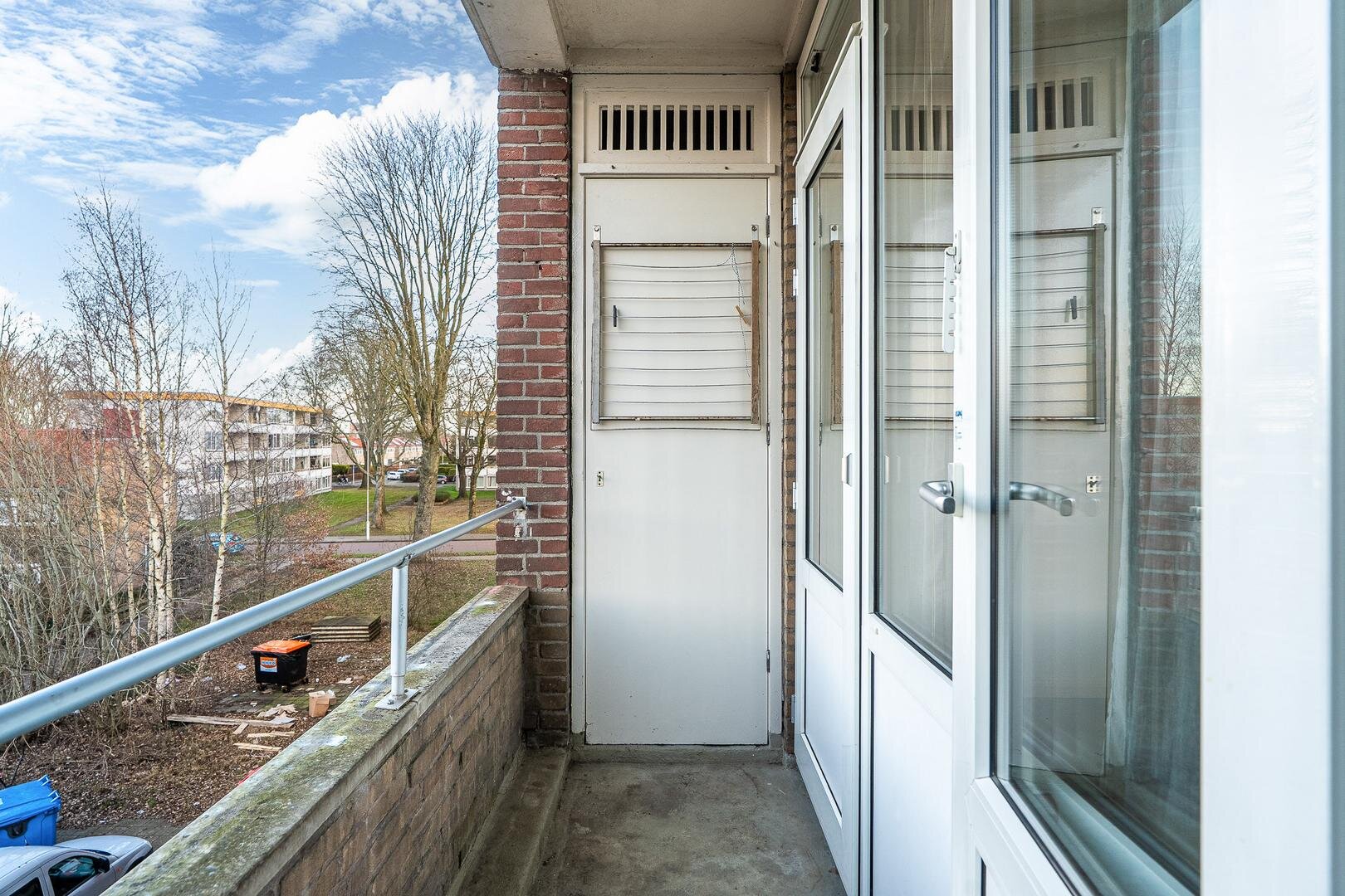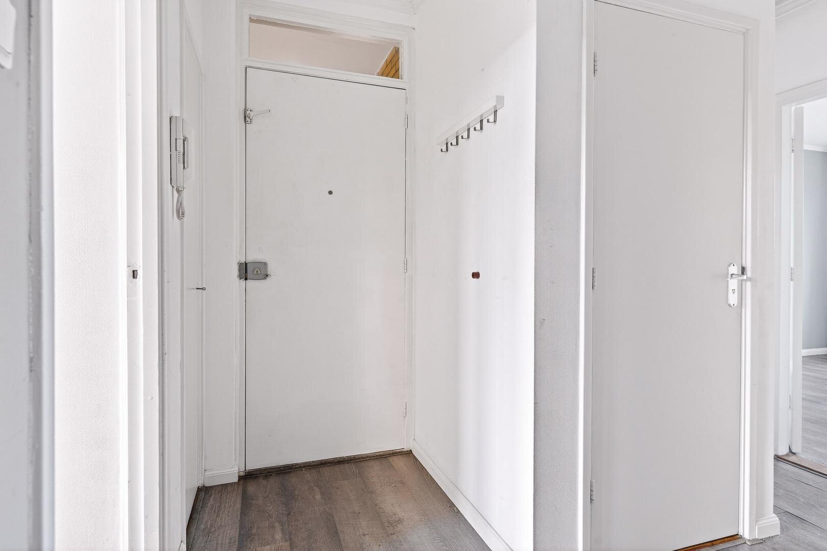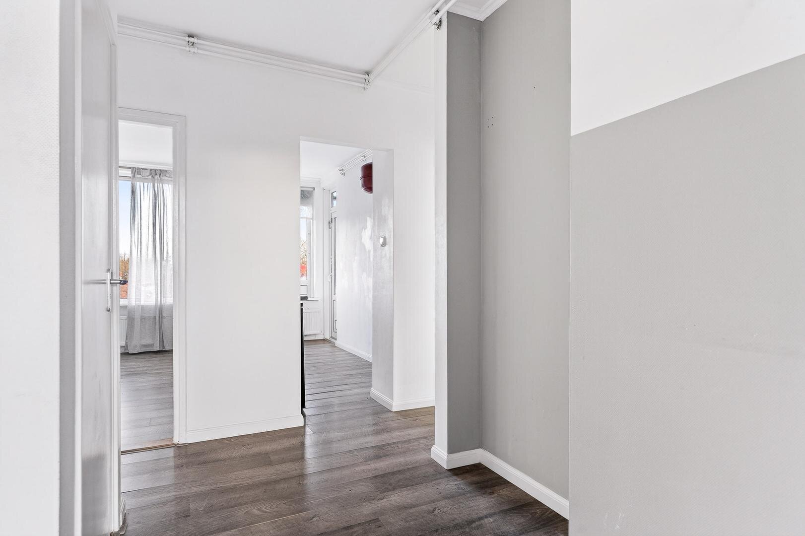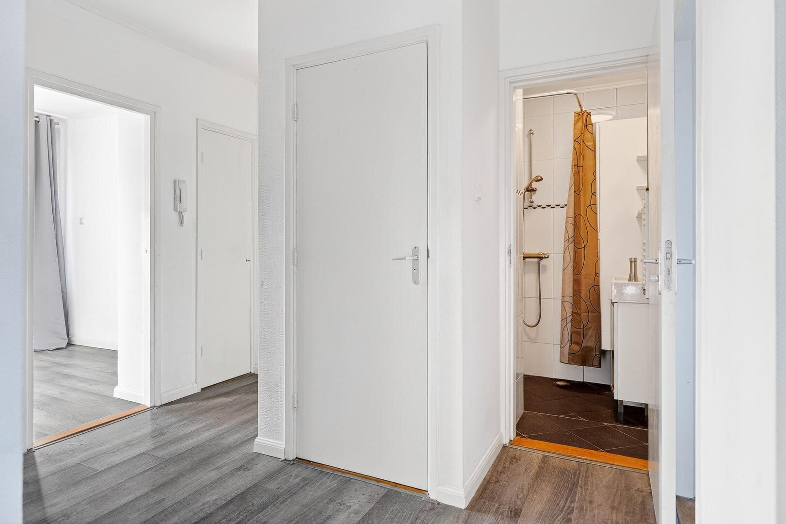Via het afgesloten portiek met bellentableau en het trappenhuis komt u bij het appartement. De ruime hal geeft toegang tot alle vertrekken, de meterkast en een handige garderobenis. De lichte woonkamer beschikt over een vaste kast en grenst, net als de keuken, aan het balkon aan de achterzijde (noord), waar ook een praktische bergkast aanwezig is.