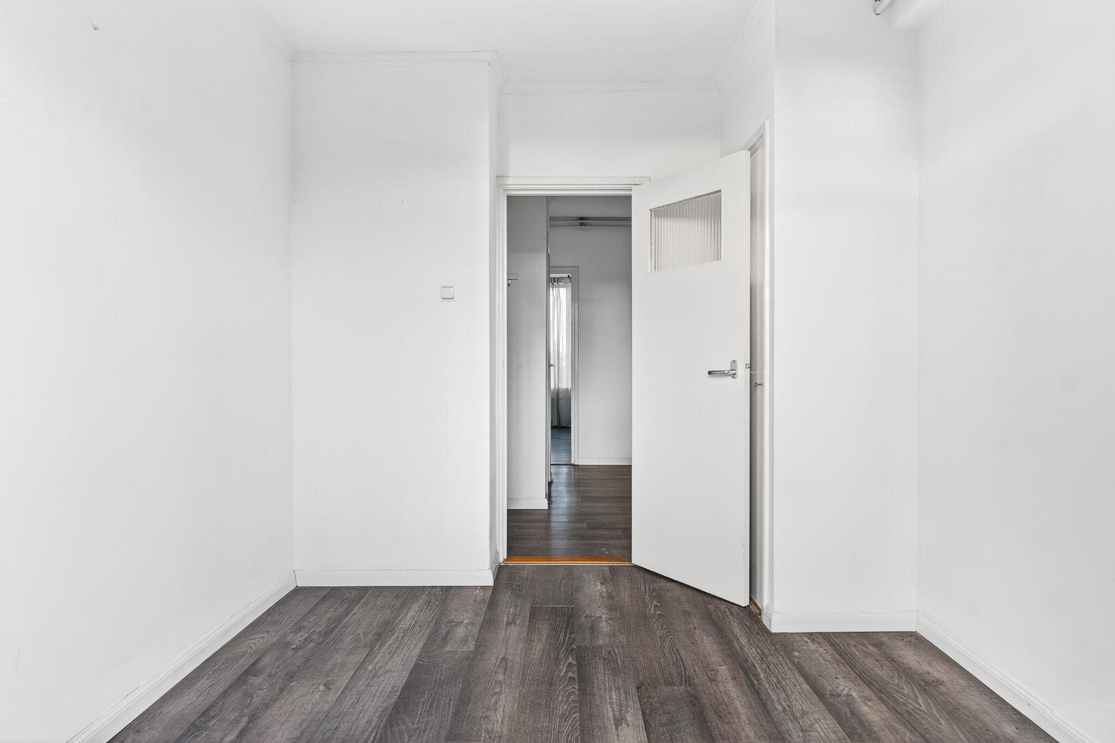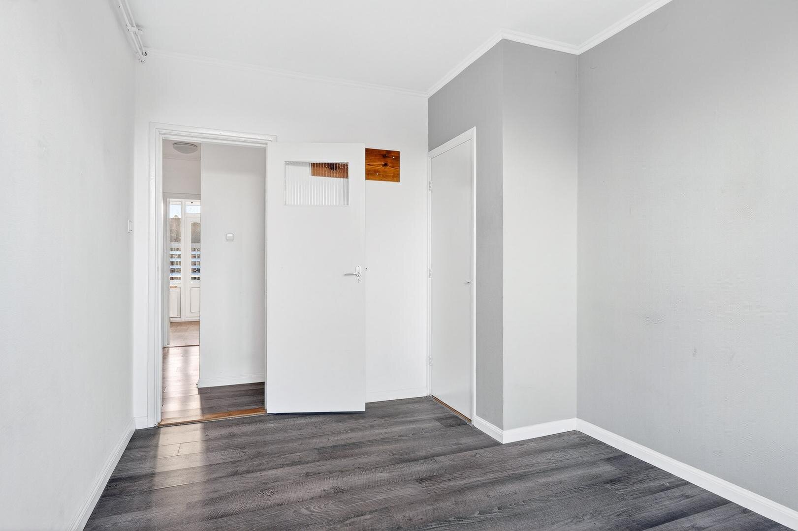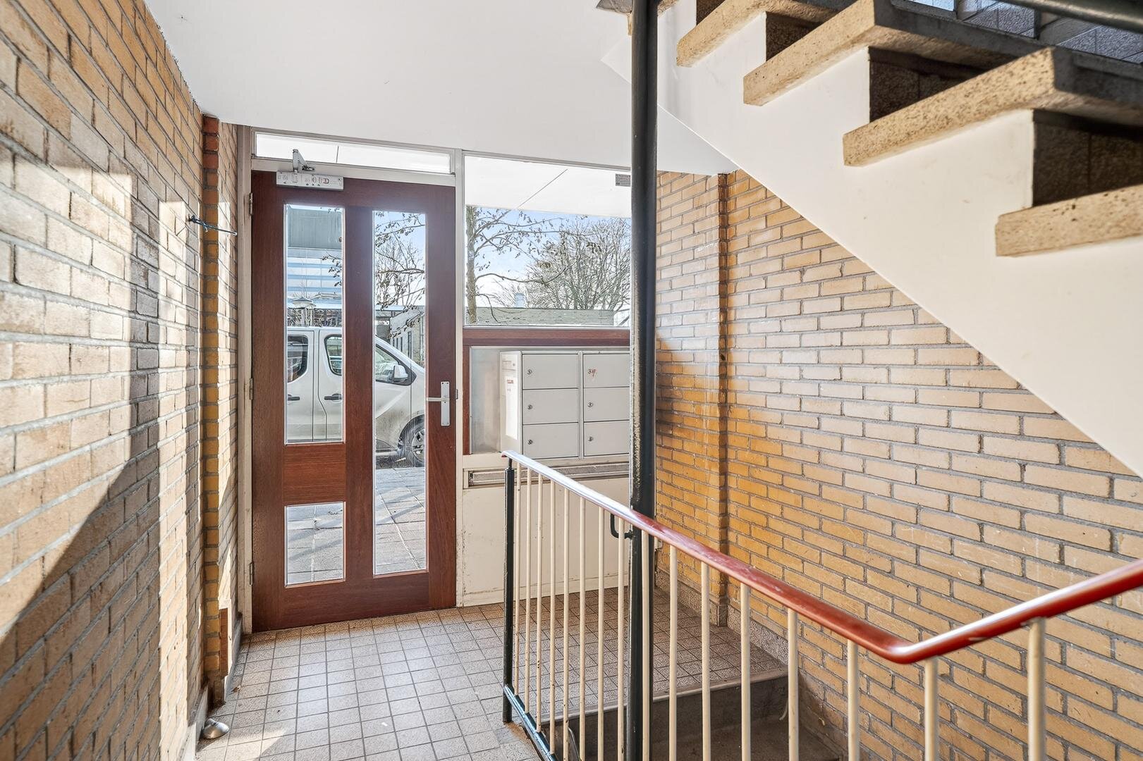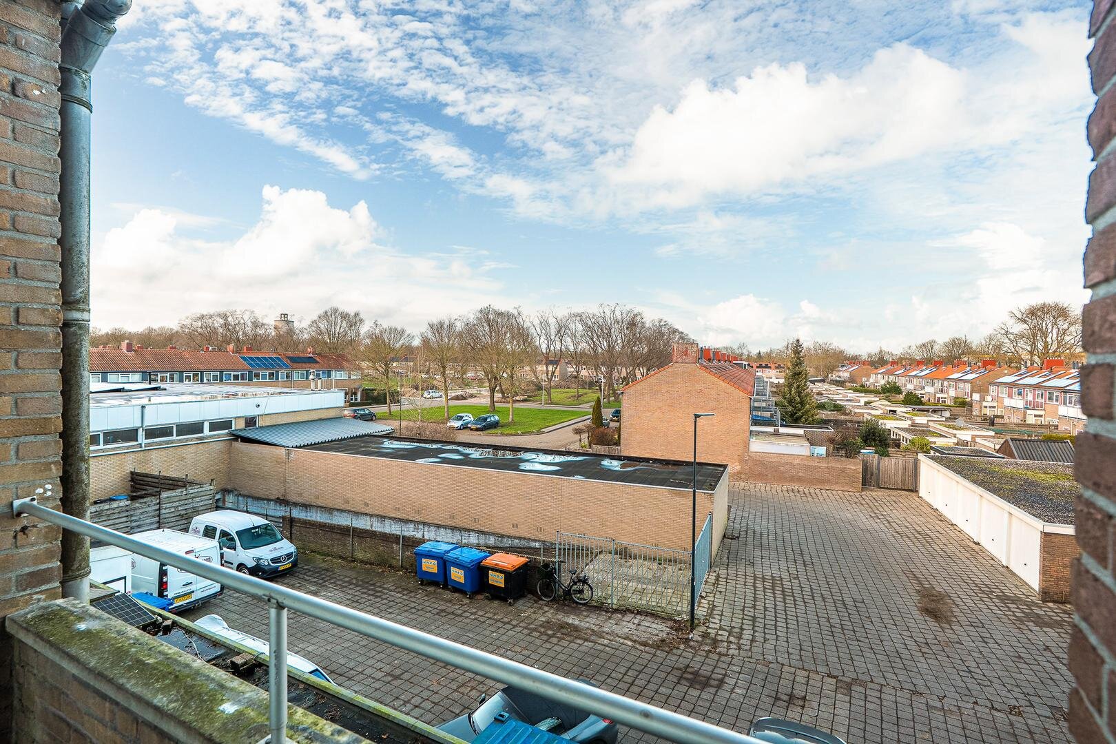 Via het afgesloten portiek met bellentableau en het trappenhuis komt u bij het appartement. De ruime hal geeft toegang tot alle vertrekken, de meterkast en een handige garderobenis. De lichte woonkamer beschikt over een vaste kast en grenst, net als de keuken, aan het balkon aan de achterzijde (noord), waar ook een praktische bergkast aanwezig is.
