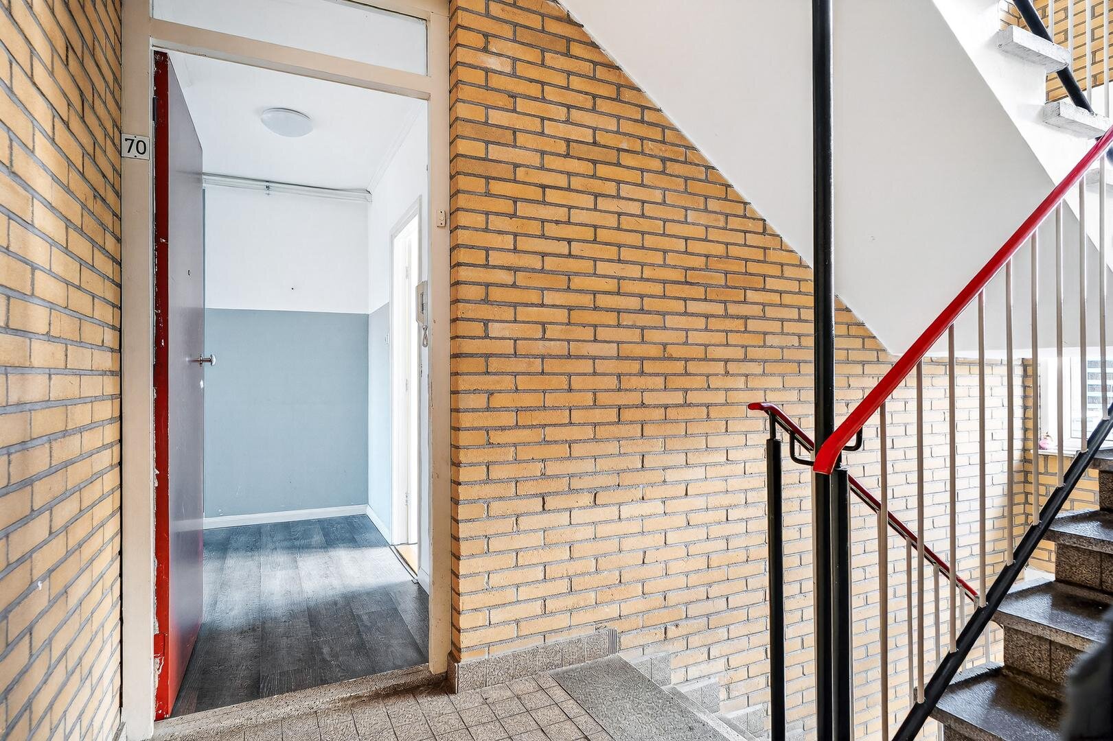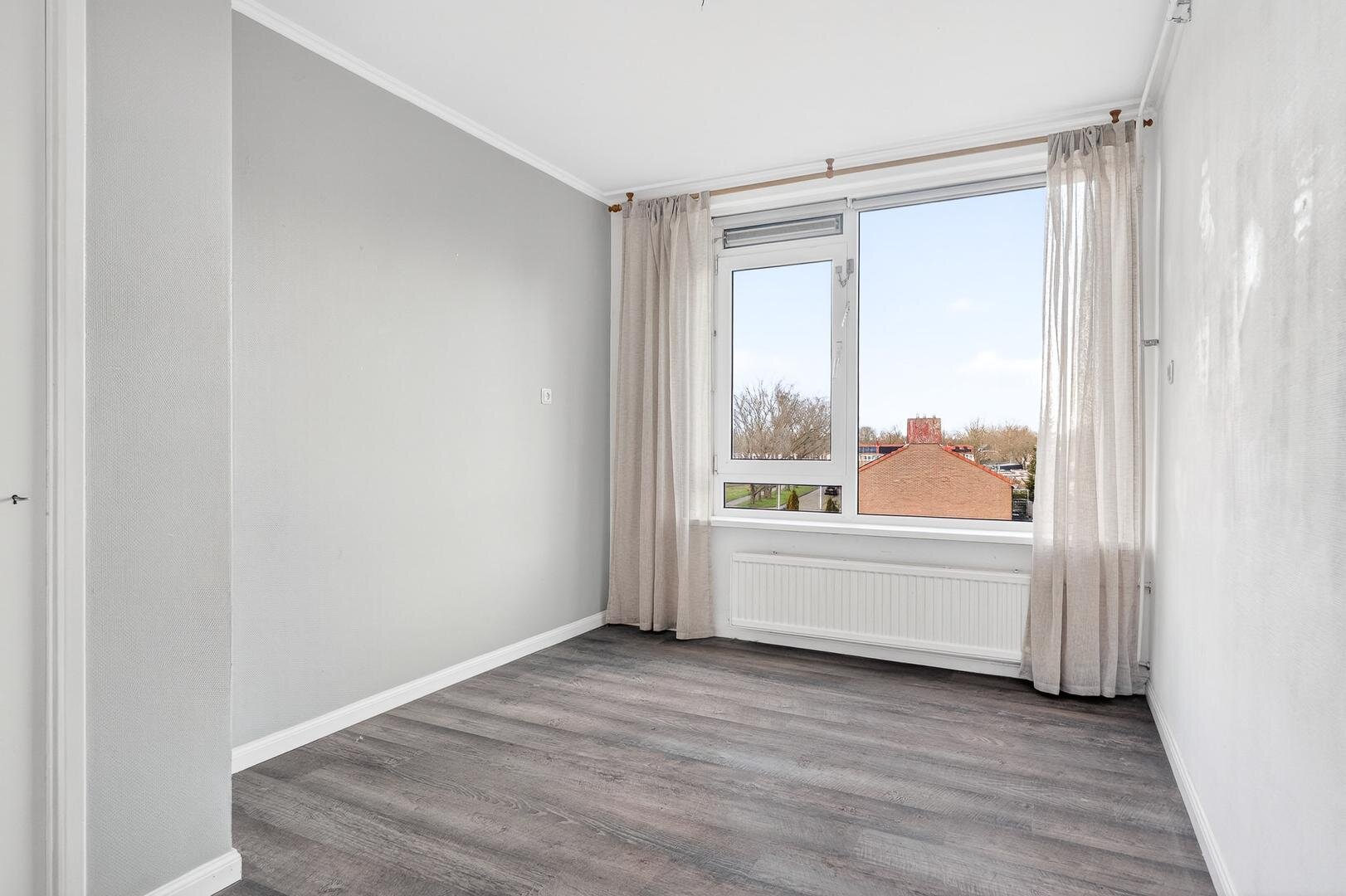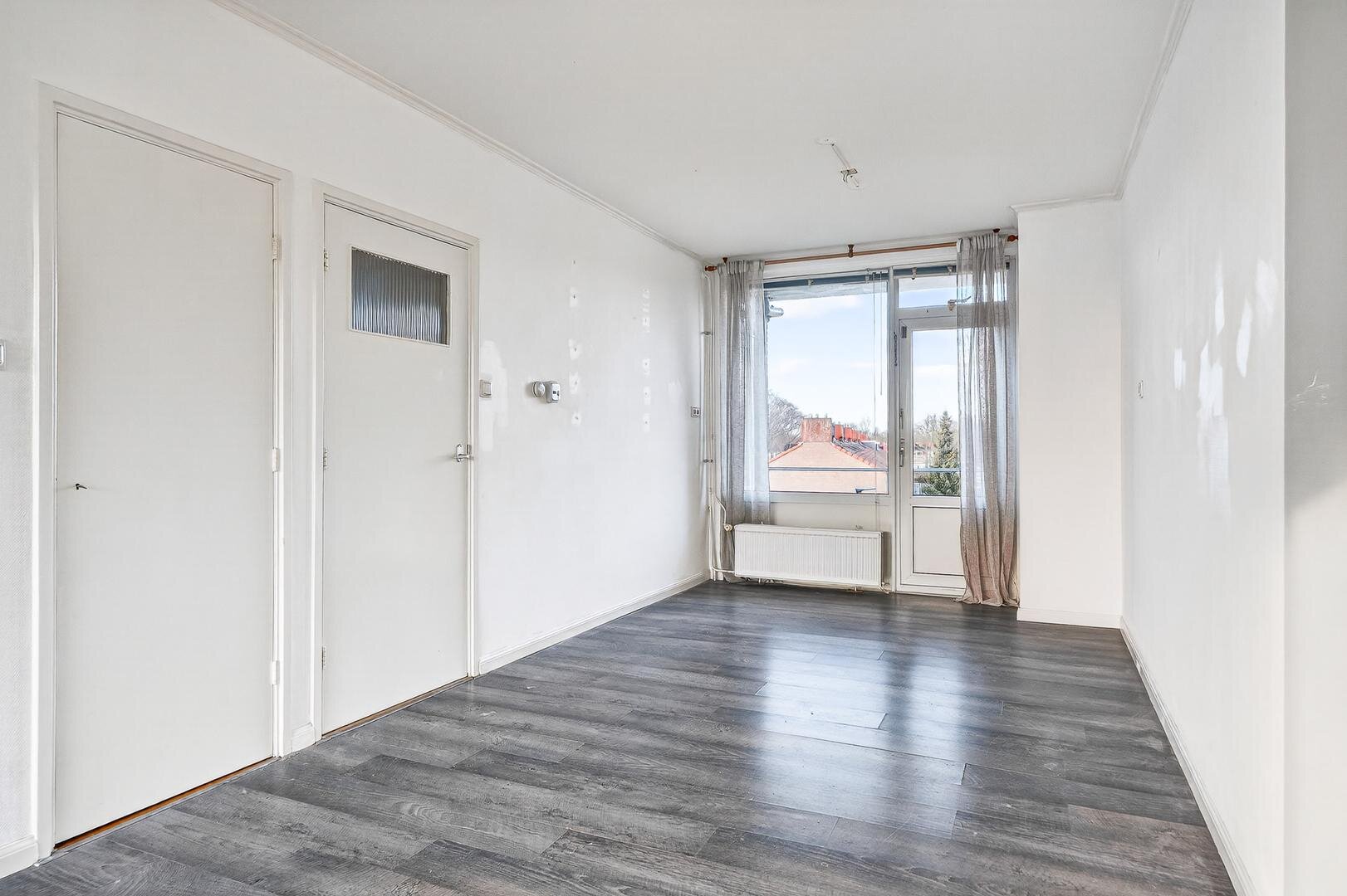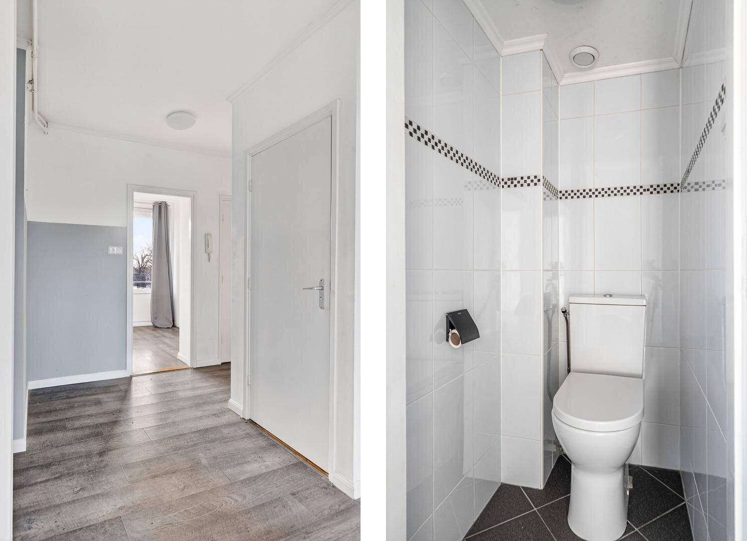Via het afgesloten portiek met bellentableau en het trappenhuis komt u bij het appartement. De ruime hal geeft toegang tot alle vertrekken, de meterkast en een handige garderobenis. De lichte woonkamer beschikt over een vaste kast en grenst, net als de keuken, aan het balkon aan de achterzijde (noord), waar ook een praktische bergkast aanwezig is.