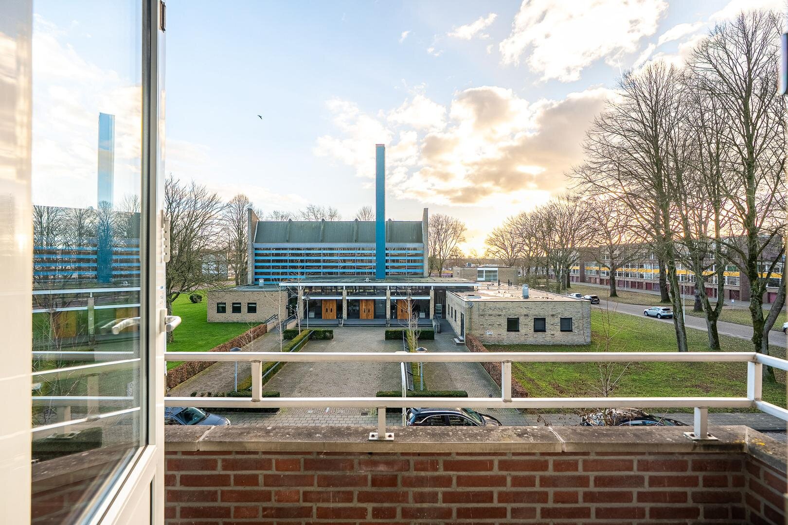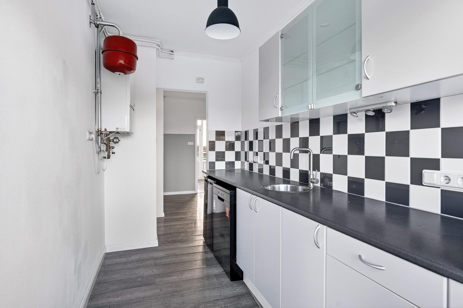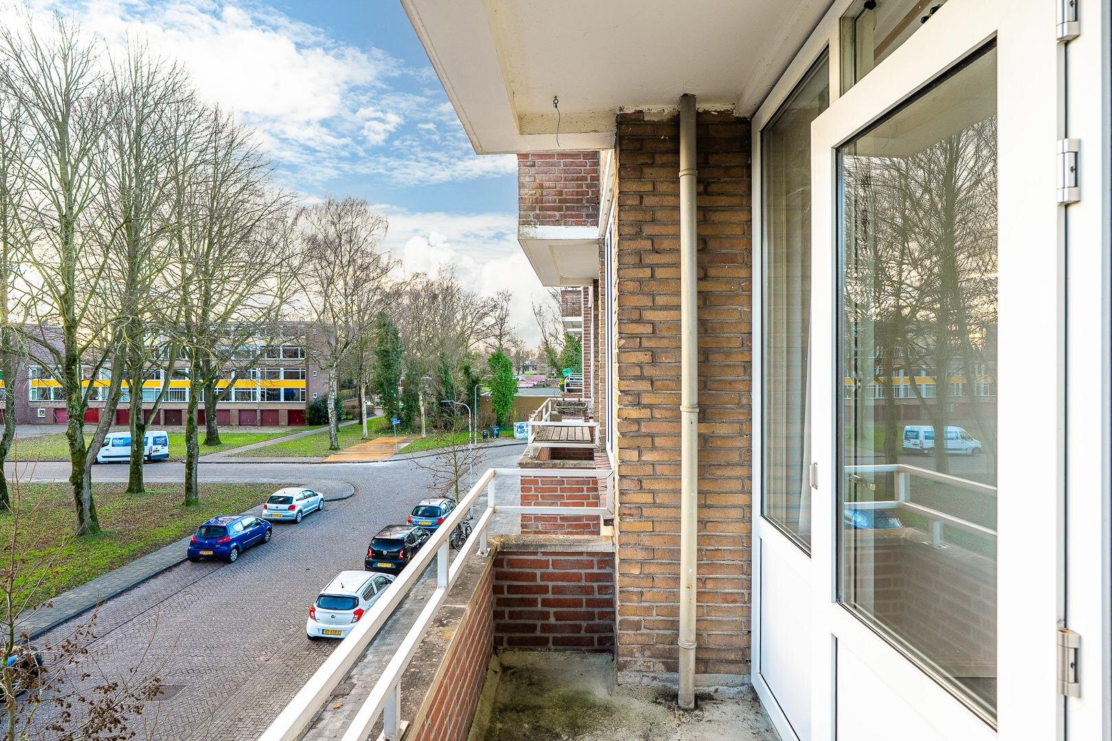 De keuken is ingericht met een nette keukenopstelling, een wasmachineaansluiting en de cv-ketel. Vanuit de hal bereikt u de vernieuwde badkamer met douche en wastafel, het separate vernieuwde toilet en twee slaapkamers, beide voorzien van vaste kasten. Eén van de slaapkamers heeft toegang tot het zonnige balkon aan de voorzijde (zuid).