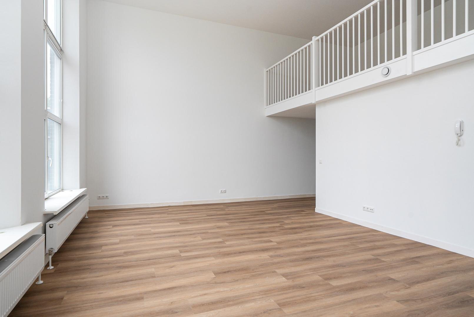 Dit appartement is gelegen op de begane grond en voorzien van een entresol met slaapgedeelte. Wat opvalt is het hoge plafond en de grote ramen die een prachtige lichtinval en sfeer geven.